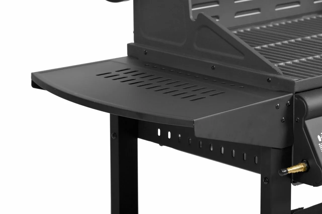 - Výška grilovací plochy nad zemí je 81 cm, stejně vysoko jsou i boční odkládací plochy.