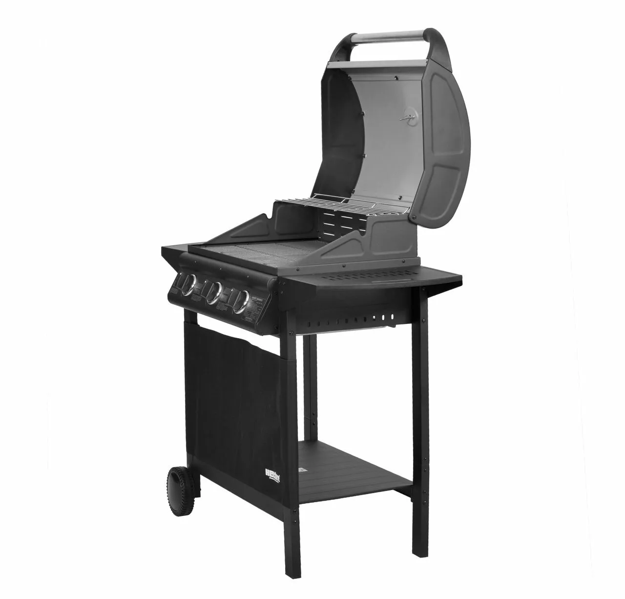 - Gril je s uzavřeným víkem 104 cm vysoký, 123 cm dlouhý a 53 cm široký.