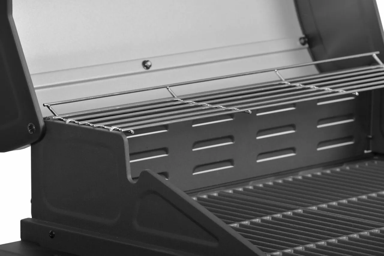 - = Integrovaný teploměr na víku pro kontrolu teploty při grilování