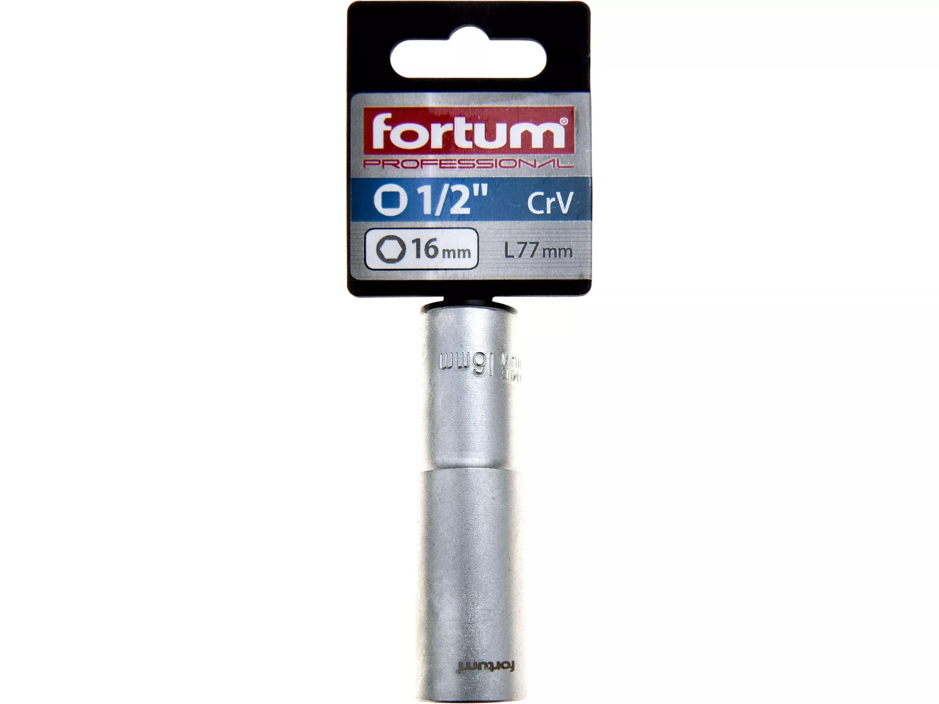 Hlavice nástrčná prodloužená 1/2", 16mm, l 77mm FORTUM 4700516