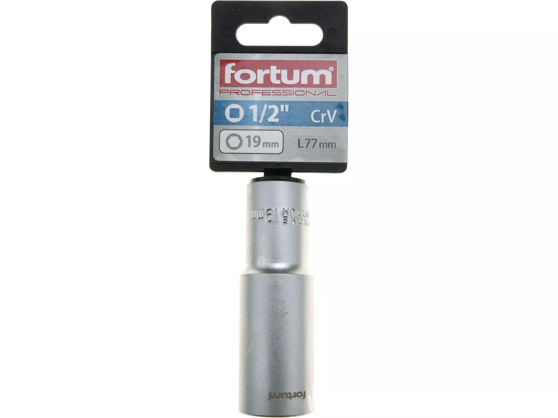 Hlavice nástrčná prodloužená 1/2", 19mm, l 77mm FORTUM 4700519