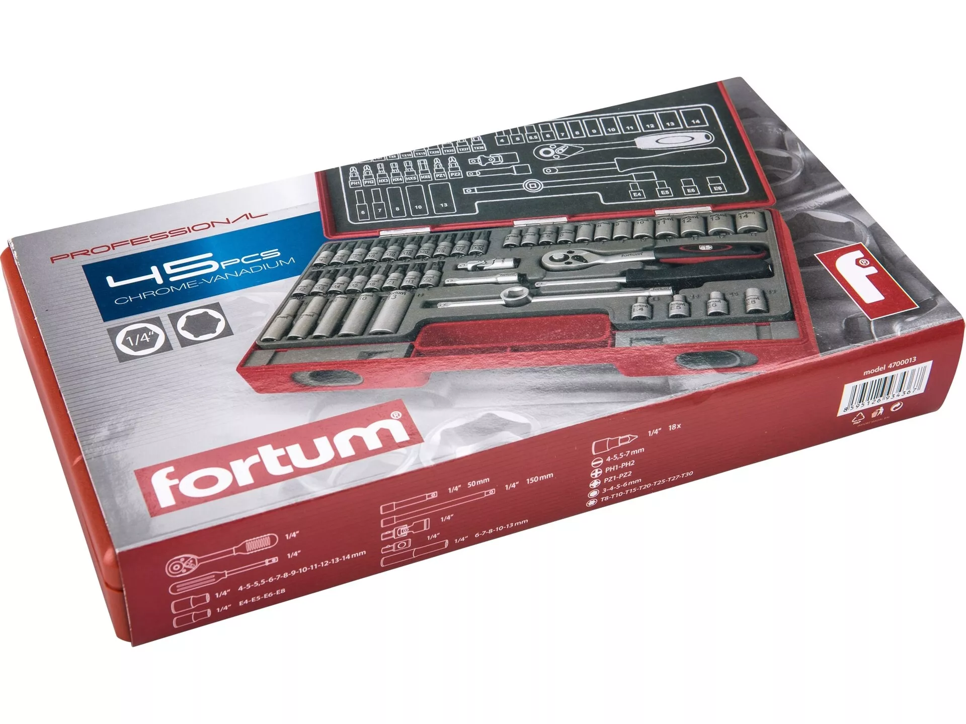Hlavice nástrčné a zástrčné, sada 45ks, 1/4" FORTUM 4700013