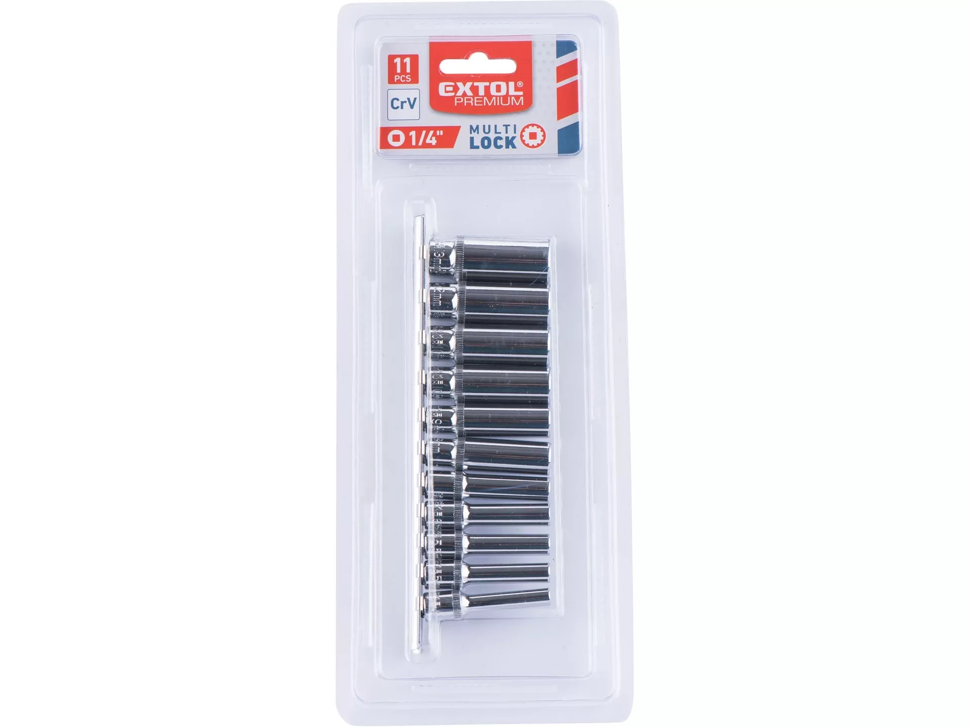 Hlavice nástrčné prodloužené, multi-lock, sada 11ks, 1/4", crv EXTOL PREMIUM 8818110