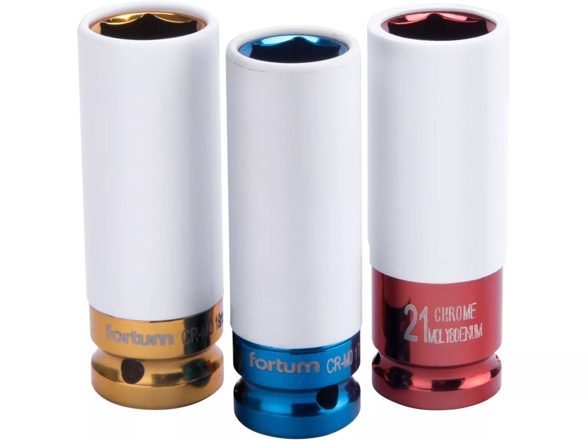 Hlavice nástrčné rázové 1/2", sada 3ks, 17-19-21mm, l 86mm FORTUM 4700800