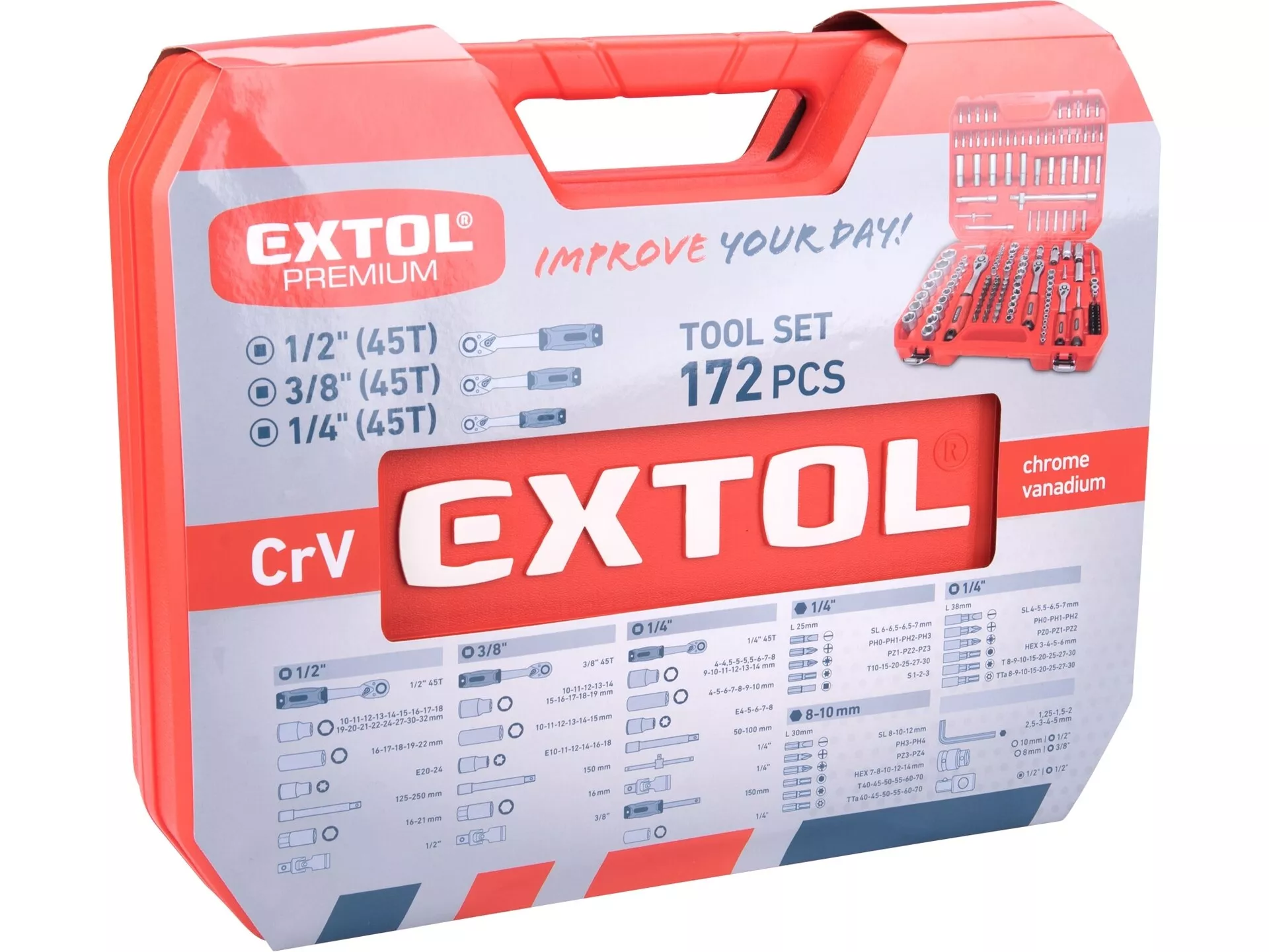 Hlavice nástrčné, sada 172ks, 1/4", 3/8" a 1/2", crv EXTOL PREMIUM 8818346