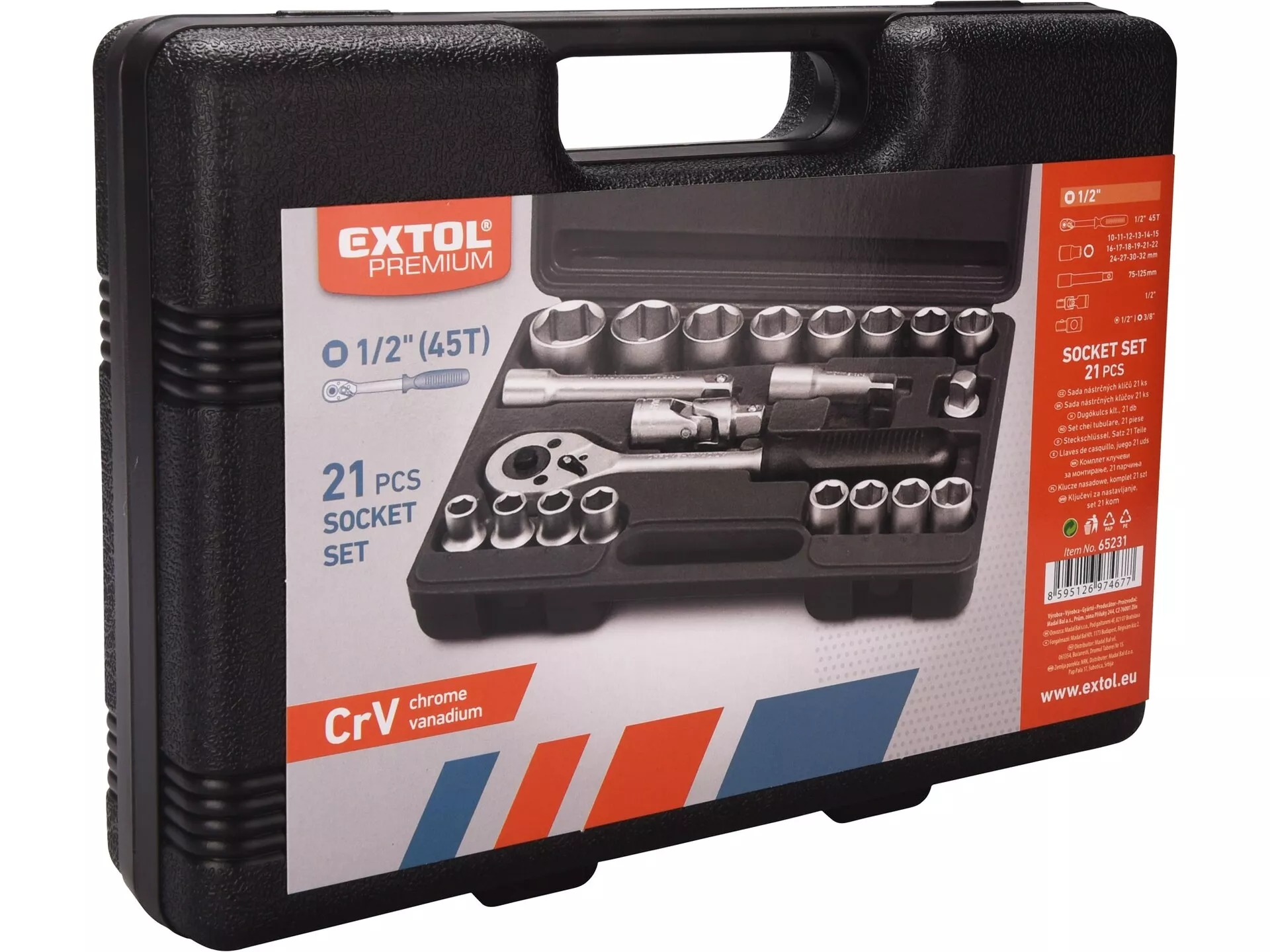 Hlavice nástrčné, sada 21ks, 1/2", crv EXTOL PREMIUM 65231
