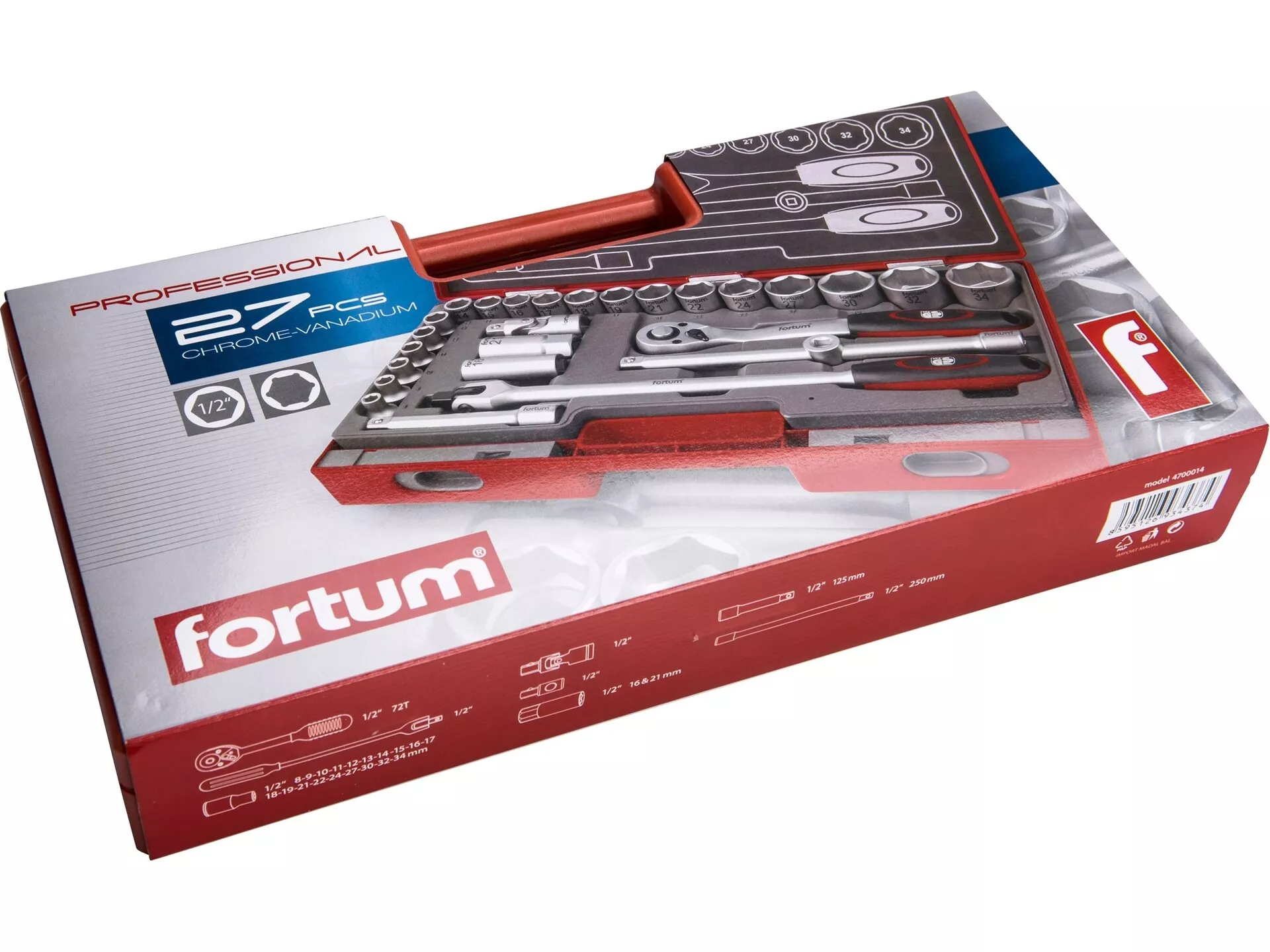 Hlavice nástrčné, sada 27ks, 1/2" FORTUM 4700014