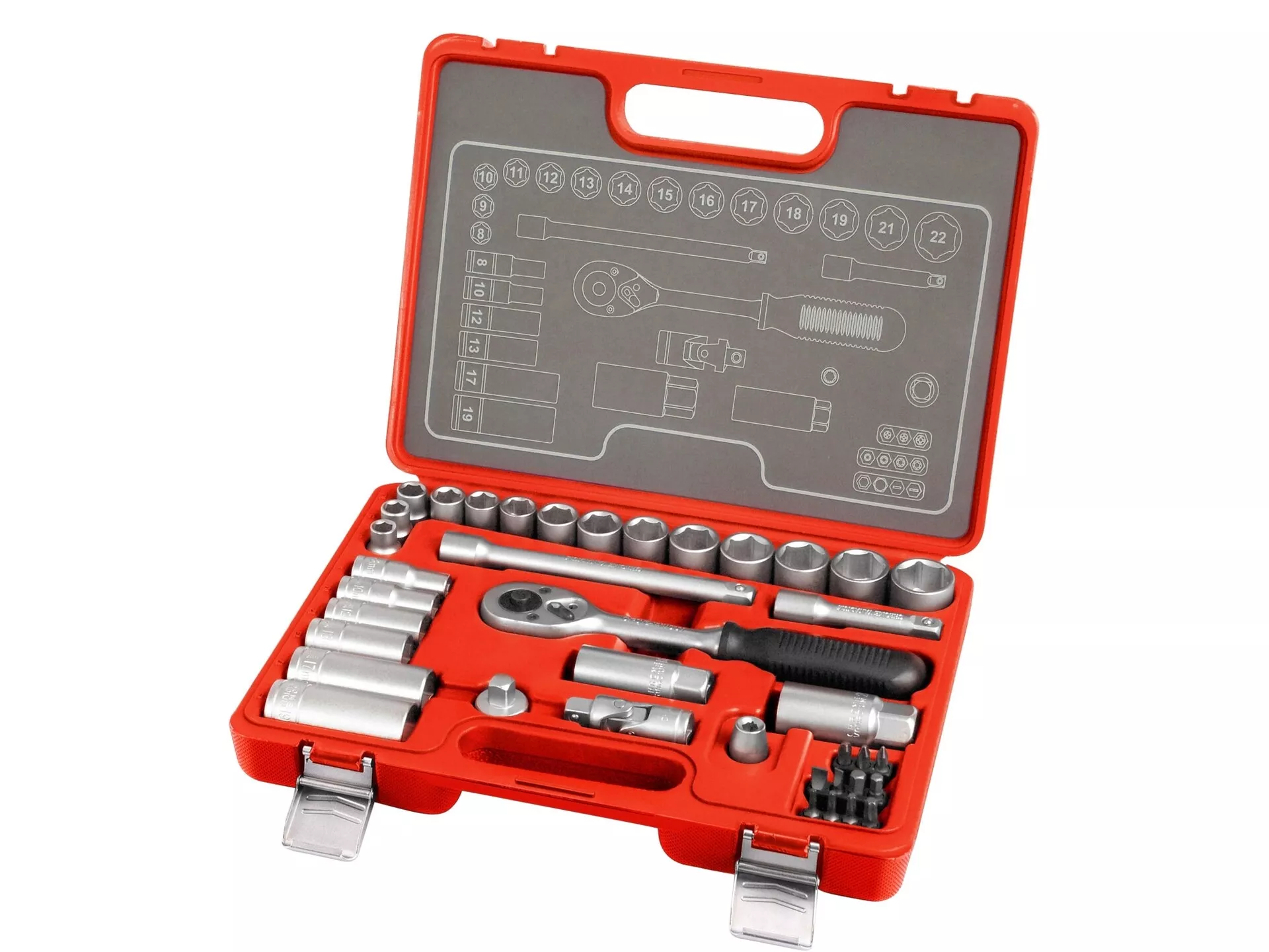 - Hlavice nástrčné: 3/8": 8-9-10-11-12-13-14-15-16-17-18-19-21-22mm