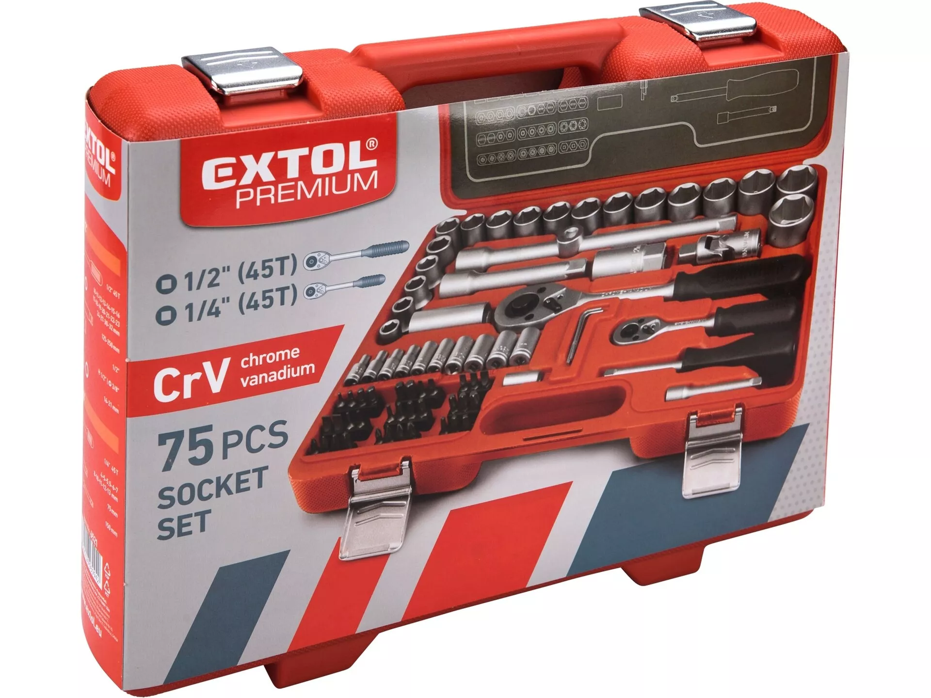 Hlavice nástrčné, sada 75ks, 1/4", 1/2" EXTOL PREMIUM 6521