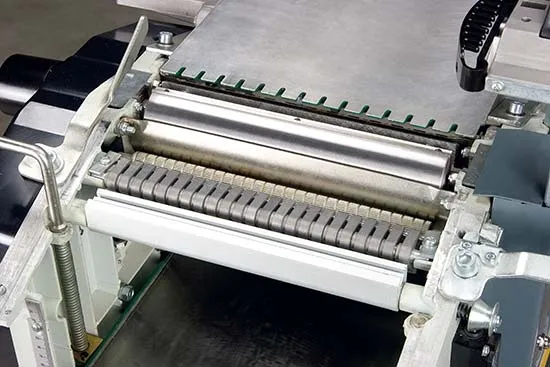 - Pogumovaný výstupní válec chrání povrch obrobku při protahování