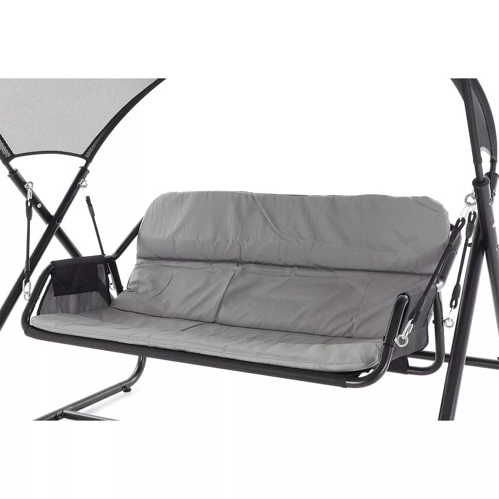 - Luxusní zahradní houpačka PARMA De LuxeVelikost: 190 x 145 x 166 cmPrůměr trubek: 42-38-30 mmŠířka lavice: 150 cmNosnost: 250 kgČalouněný podsedák je součástí balení.Zahradní třímístná houpací lavice s pevným zavěšením sedáku.Povrchová úprava je provedena komaxitovou barvou.Vhodná pro zahradní kryté plochy.Pro dlouholetou životnost je vhodné houpačku nenechávat trvale vystavenou přírodním vlivům.Luxusní zahradní houpačka PARMA De Luxe vyniká svou neobyčejnou pevností a trvanlivostí. Tyto vlastnosti vyplývají z použitého materiálu a moderních technologií, na základě kterých je kovový nábytek vyráběn.Při výrobě je použit speciálně upravený ocelový materiál o průměru trubek 42-38-30 mm pro vysokou tuhost. Povrchová úprava nábytku je provedena komaxitovou barvou. Kovová konstrukce podsedáku a opěradla je pro pohodlnost uživatelů vyplněna speciální tkaninou. Masivní čalounění o síle 50 mm plně dokresluje charakter pohodlné luxusní houpačky pro ty nejnáročnější uživatelé.