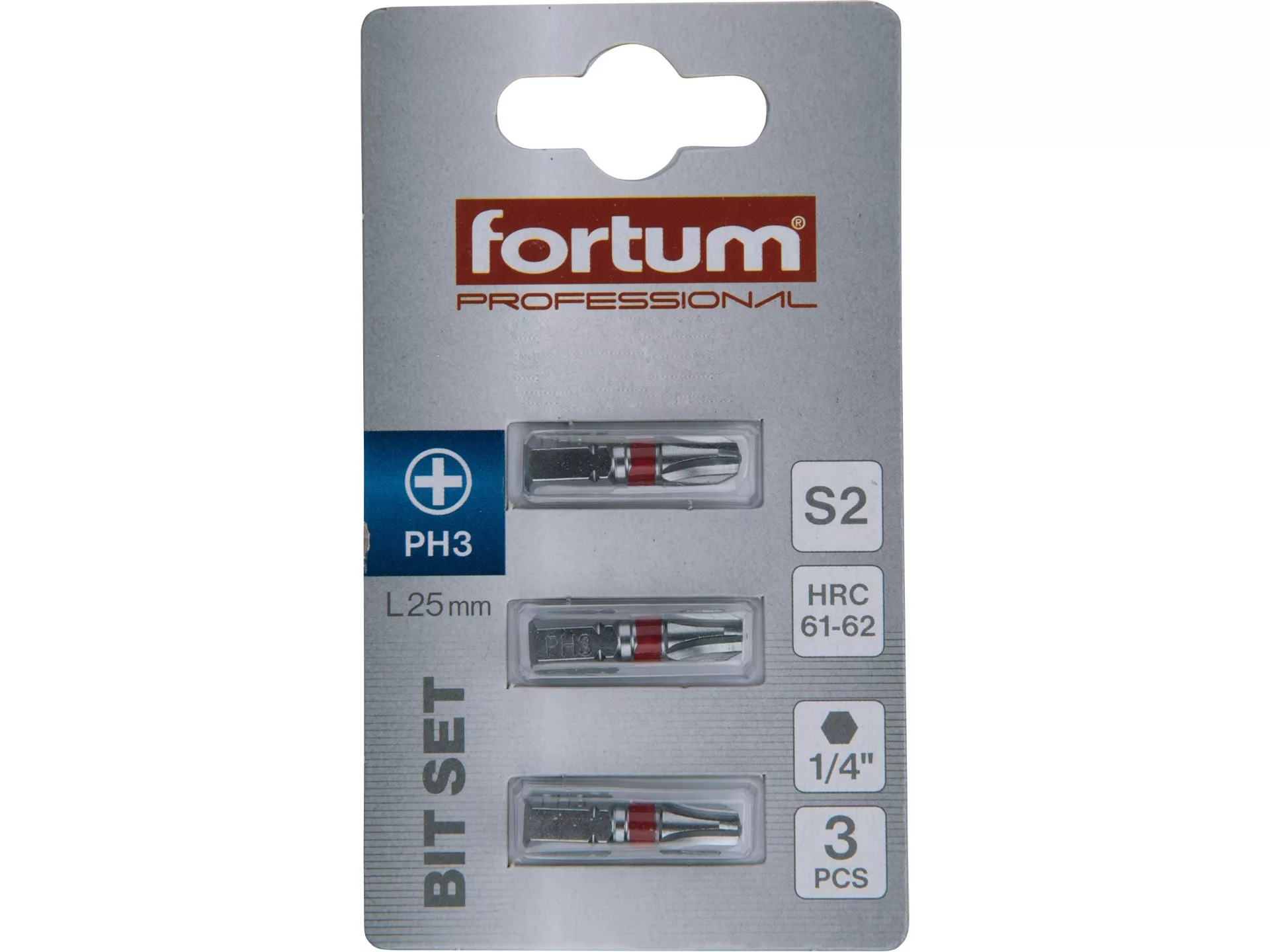 Hrot křížový phillips, sada 3ks, ph 3x25mm, s2 FORTUM 4741203