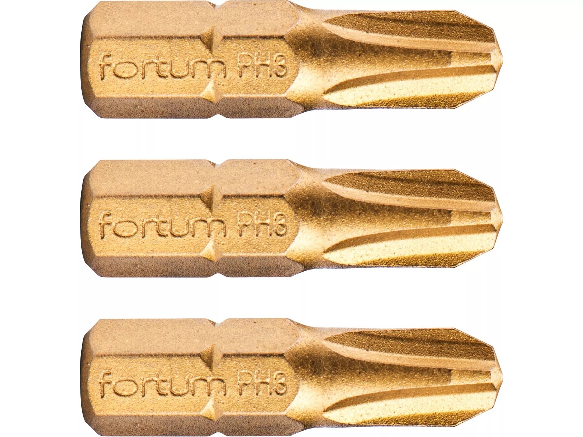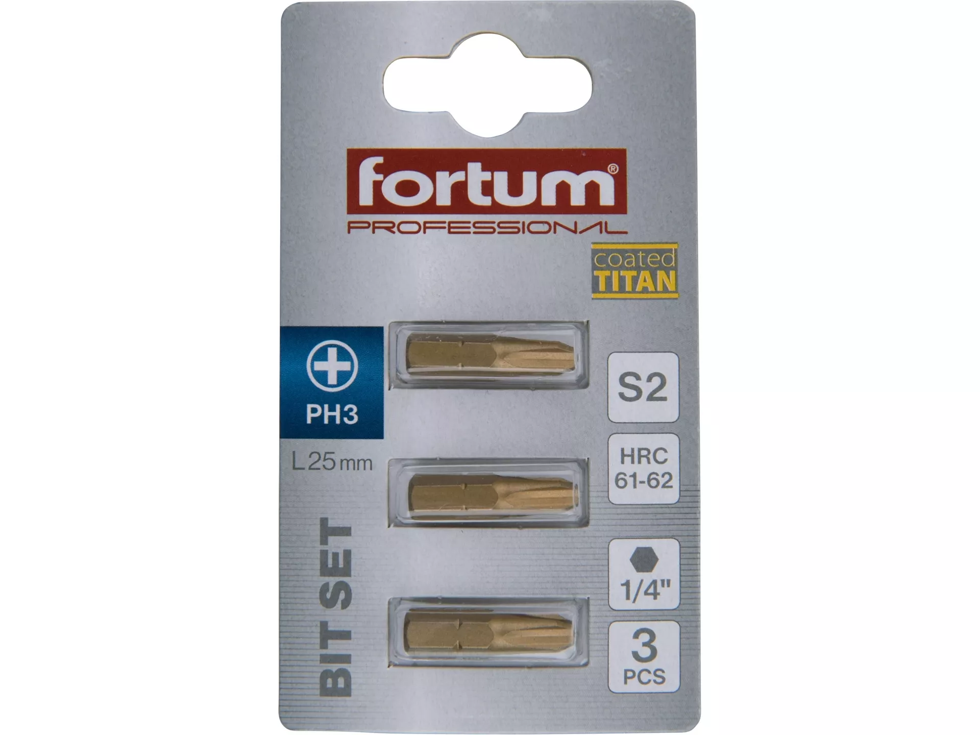 Hrot křížový phillips, sada 3ks, ph 3x25mm,titan. úprava, s2 FORTUM 4741273