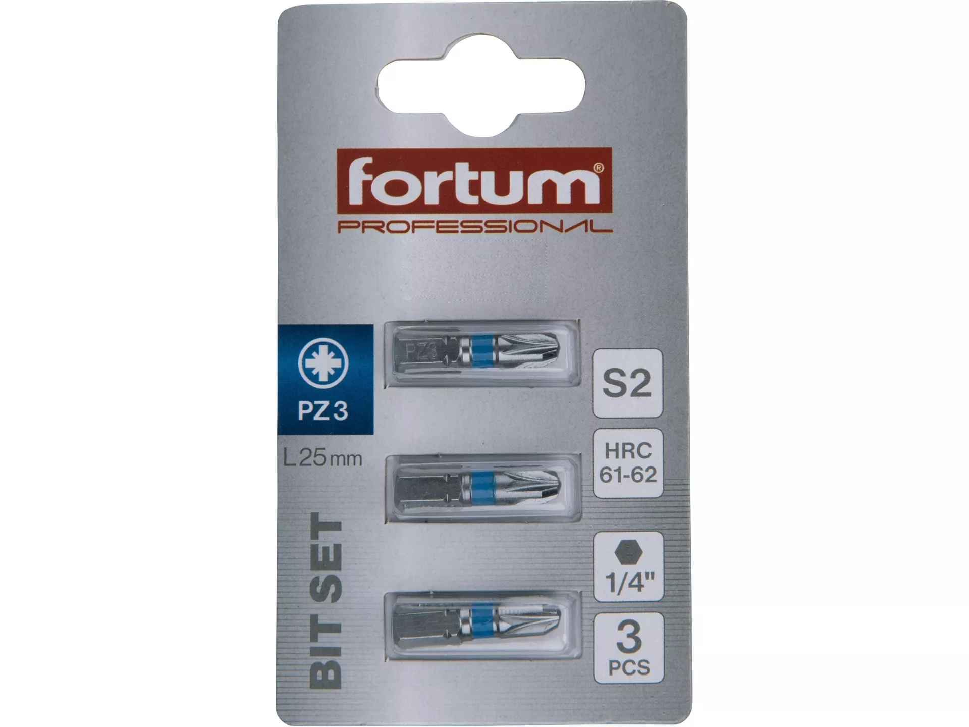 Hrot křížový pozidriv, sada 3ks, pz 3x25mm, s2 FORTUM 4741303