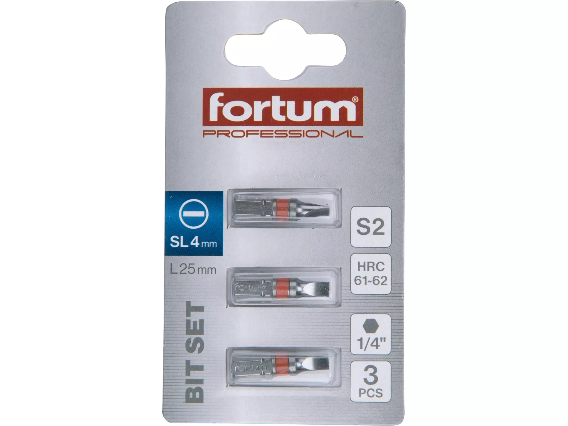 Hrot plochý sada 3ks, 4x25mm, s2 FORTUM 4741104