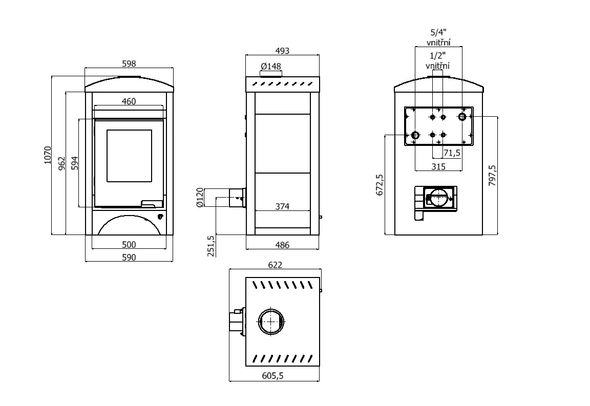 - Kouřovod: 150 mm