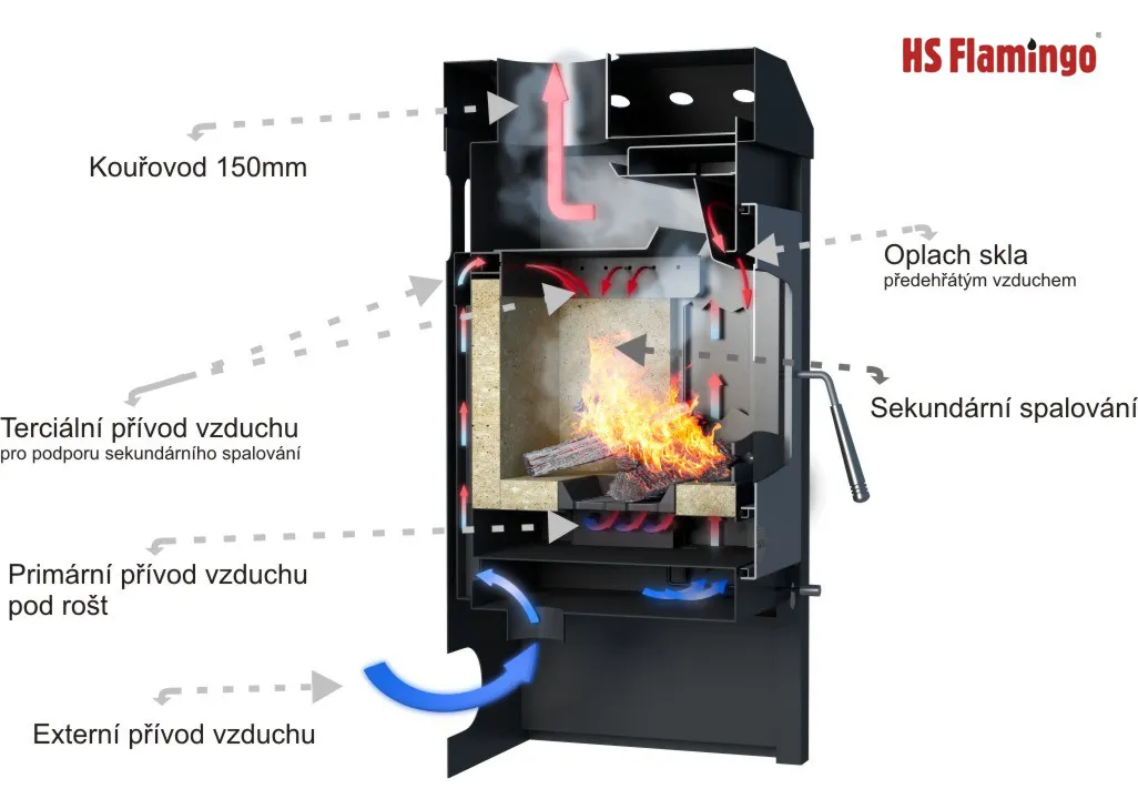 - Krbová kamna HS Flamingo jsou ryze českým výrobkem. Je zde kladen velký důraz na použité materiály a především jejich sílu. Krbová kamna splňují nejpřísnější evropské normy, díky nimž jsou velmi žádaná v zahraničí. Jejich komora je vyrobená z 5mm ocelového plechu a pro dokonalejší spalování je vysázena pravým šamotem. Sekundární spalování, krásně čisté sklo a externí přívod vzduchu je u kamen HS Flamingo samozřejmostí.