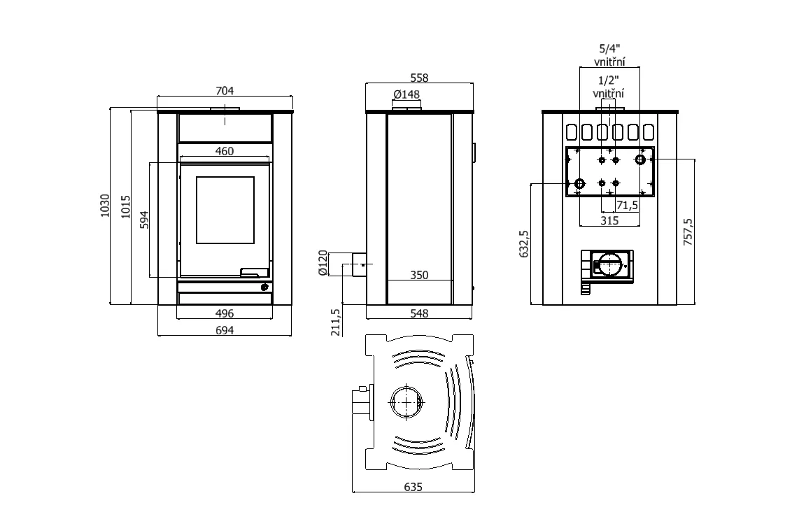 | Kouřovod: | 150 mm |
