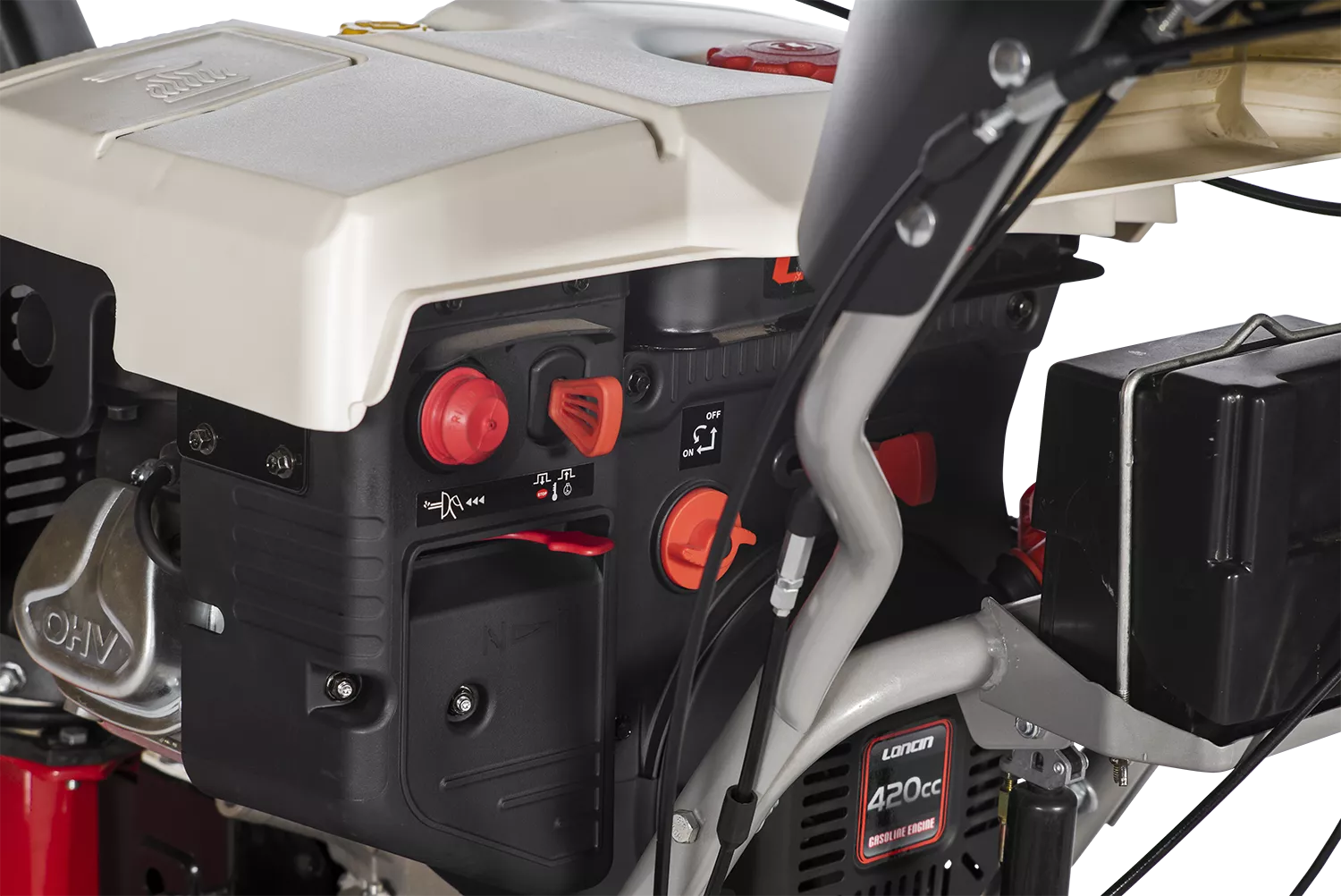- Motor 4-Takt OHV-WintermotorObjem motoru 420 cm³Výkon motoru 14HPpři 3.600 Ot./minPalivo / objem nádrže benzín bezolovnatý / 4,0 lStartování ruční a elektrické na 230VPohon profilovaná kola 16 X 6.5 - 8Šířka záběru 764 mmVýška záběru 510 mmFrézovací šnek 315 mmVzdálenost odhozu až 15 mKomín výhozu manuálně stavitelnýRychlostní stupně 6 vpřed - / 2 vzadPřední světlomet LED-světlo sériověVyhřívání rukojetí sériověHmotnost (netto / brutto): 117 kg