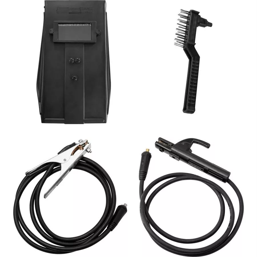 - Konstrukce: plášť z ocelového plechu, rychlospojky pro připojení svařovacích kabelů, ochrana proti přehřátí, chlazení (transformátorů) ventilátorem, ramenní popruh.Vybavení: svářecí kabel s držákem elektrod, kabel se zemnicí svorkou, drátěný kartáč (kladívko na strusku), štít. Celkové rozměry (d x š x v): 295 x 135 x 220 mm.Splňuje požadavky Nařízení Komise EU 2019/1784, stanovené na ekodesign elektrických svařovacích zařízení.