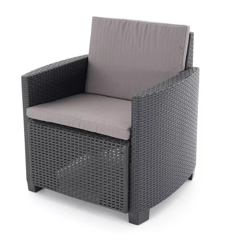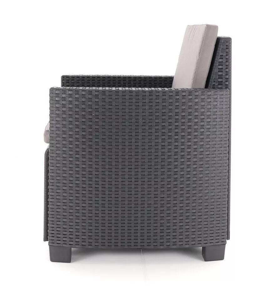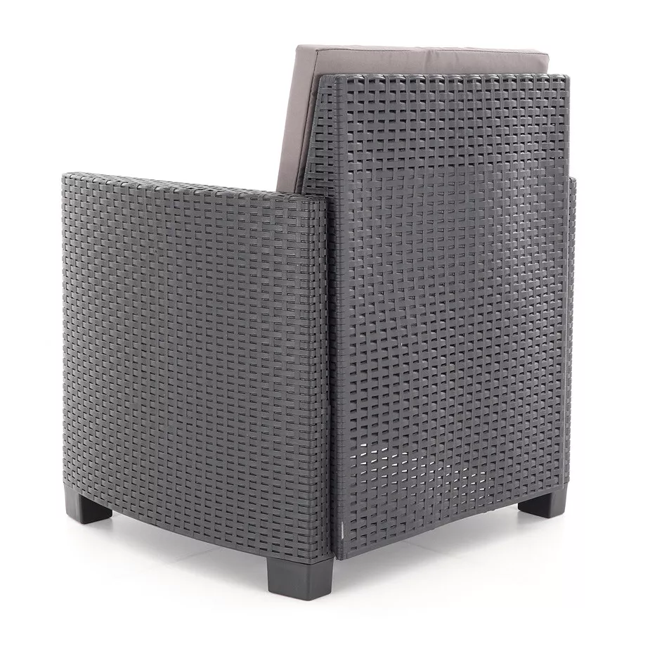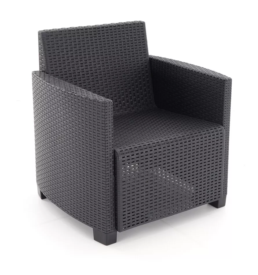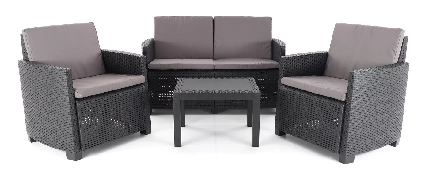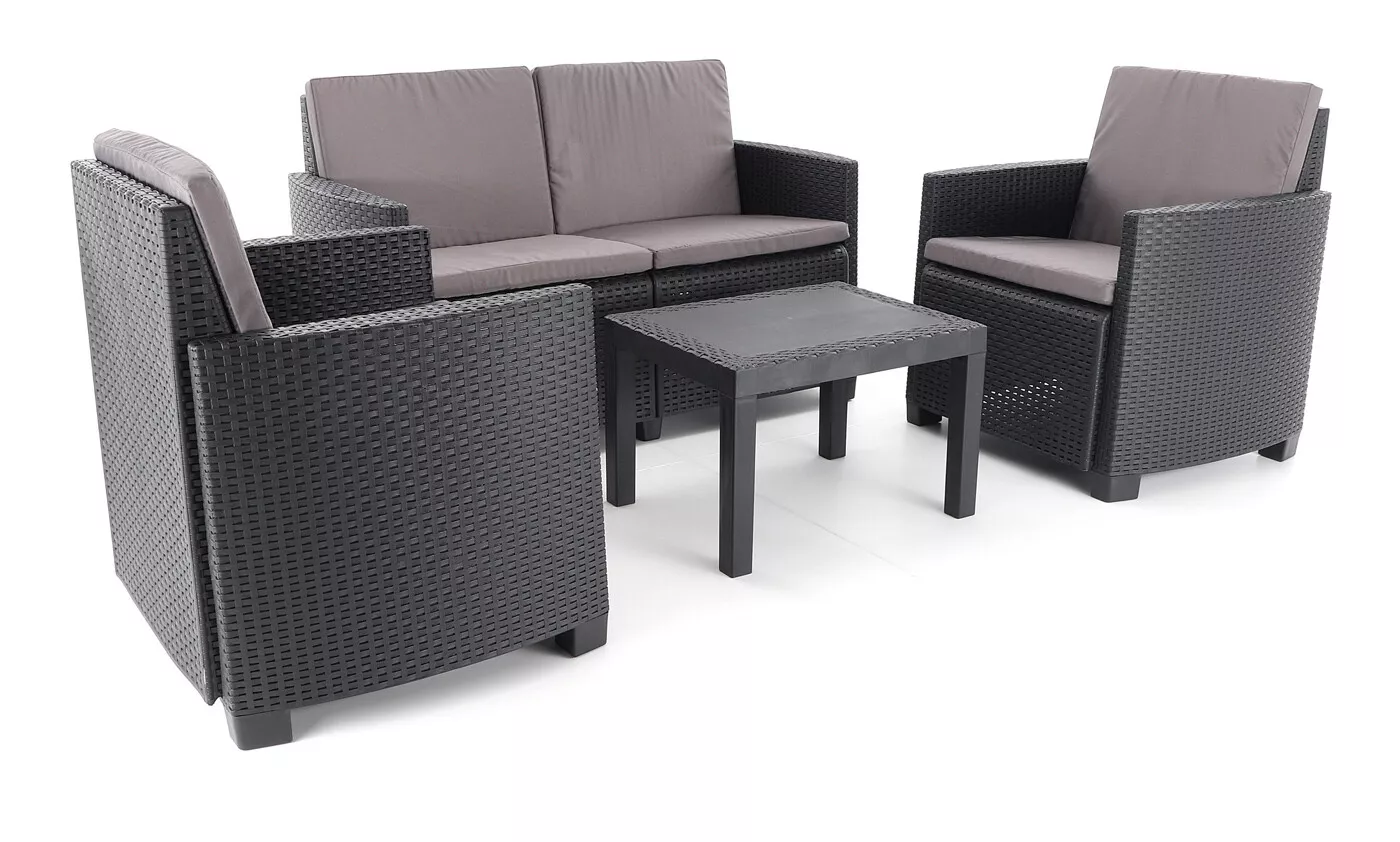 - Stolová sestava se skládá ze 2 pohodlných křesel, lavice a stolku v imitaci umělého ratanu s UV filtrem.