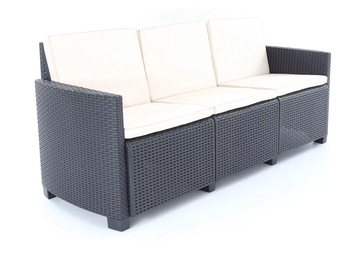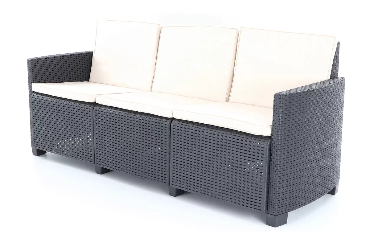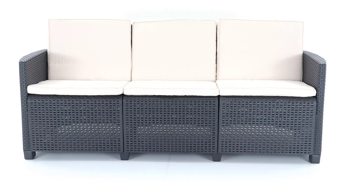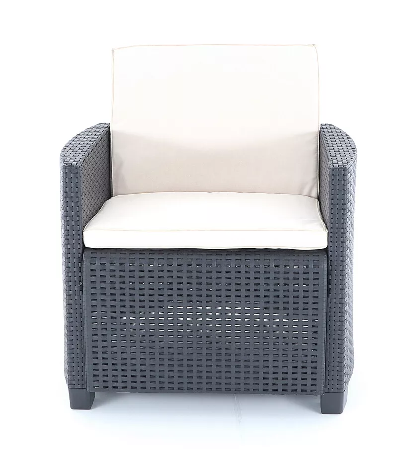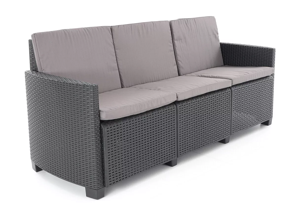 - Stolová sestava se skládá ze 2 pohodlných křesel, třímístné lavice a stolku v imitaci umělého ratanu s UV filtrem.