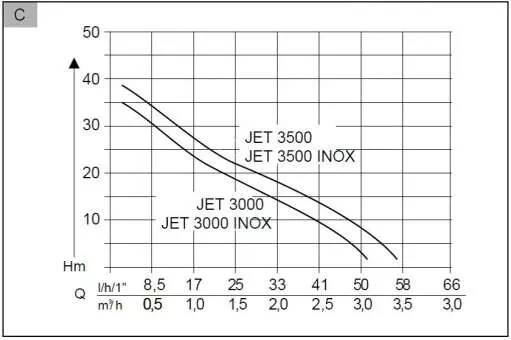 - Robustní plastové tělo čerpadla, hlava čerpadla z nerezové oceli INOX a výkonný motor s ochranou proti přetížení zaručují dlouhou životnost čerpadla Jet 3000 Classic.