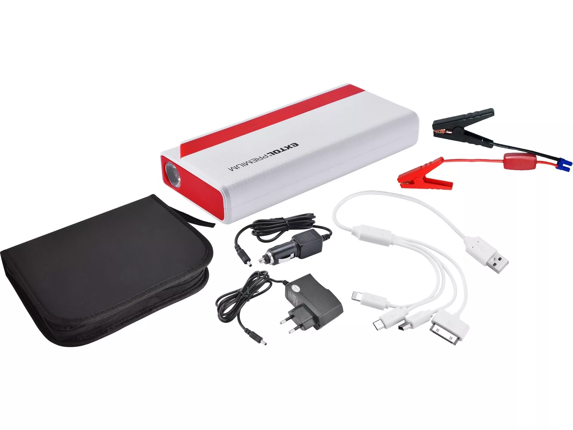 - Lehká miniaturní kompaktní startovací a energetická stanice v jednom (jump startér/powerbanka), slouží jednak jako pomocný startovací zdroj (booster) benzínových vozidel s 12V olověnou baterií a obsahem do 4000ccm tj. osobních a užitkových vozů, dále motocyklů, lodí, zahradních traktorů, čtyřkolek, apod.), tak k nabíjení mobilních telefonů, tabletů, fotoaparátů, videokamer, MP3/MP4 přehrávačů a podobných digitálních zařízení. Velmi často vede k vybití akumulátoru opomenutí zhasnutí světlometů nebo vnitřního osvětlení odstaveného vozidla a powerbanka může snadno a rychle vyřešit potíže se startováním vozidla, když je to nejvíce zapotřebí.