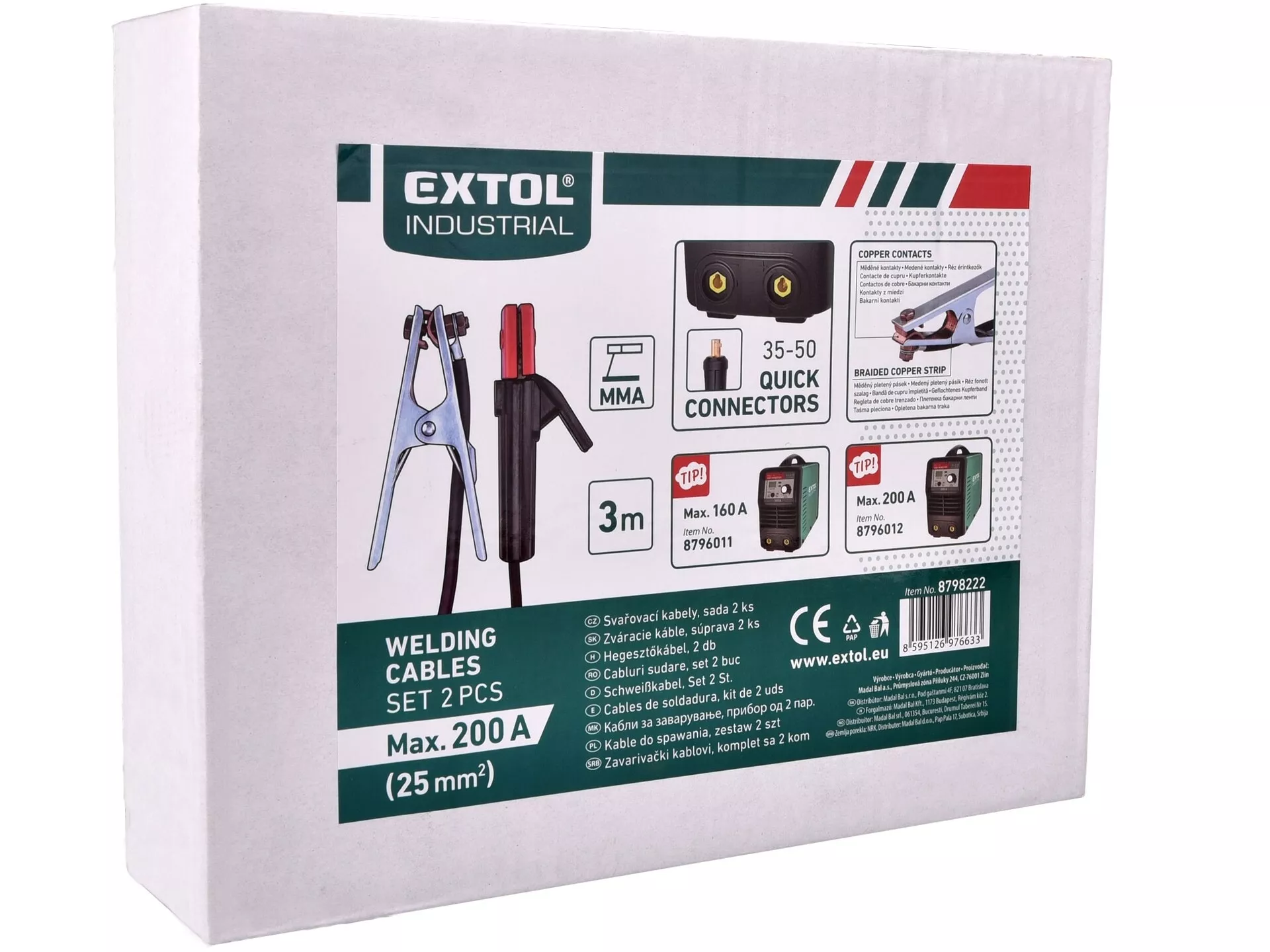 Kabely svařovací, sada 2ks, 25mm2, 3m, 35-50, kleště 200a EXTOL INDUSTRIAL 8798222