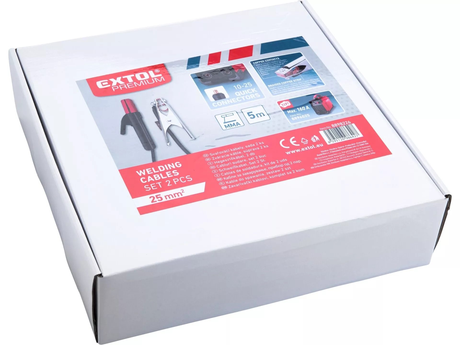 Kabely svařovací, sada 2ks, 25mm2, 5m, 10-25, kleště 200a, guma EXTOL PREMIUM 8898226
