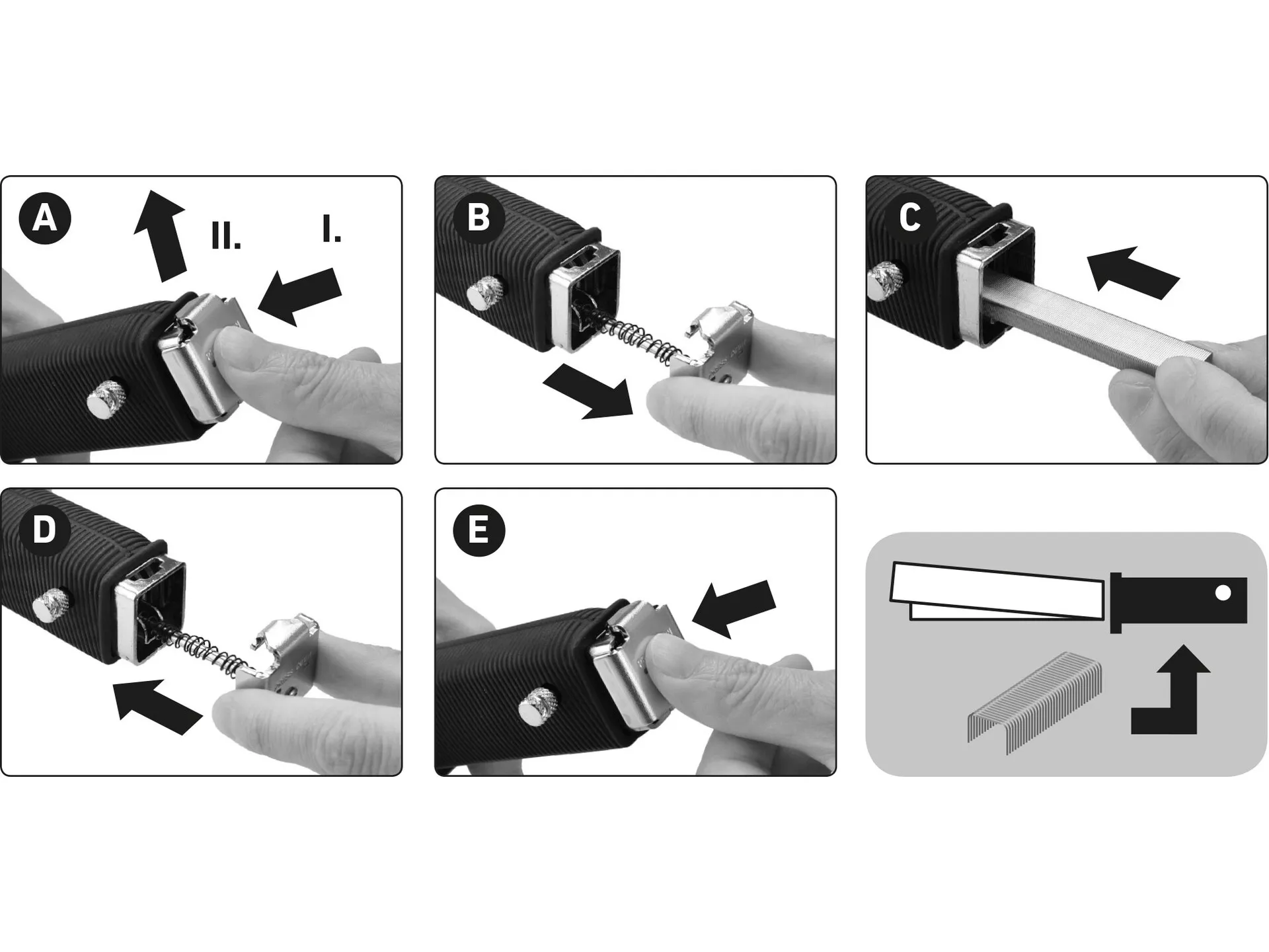 - Doplňující parametr: vhodné pro spony: výška 6-10mm, rozteč 10,6x tl.1,2mm, váha cca 930g