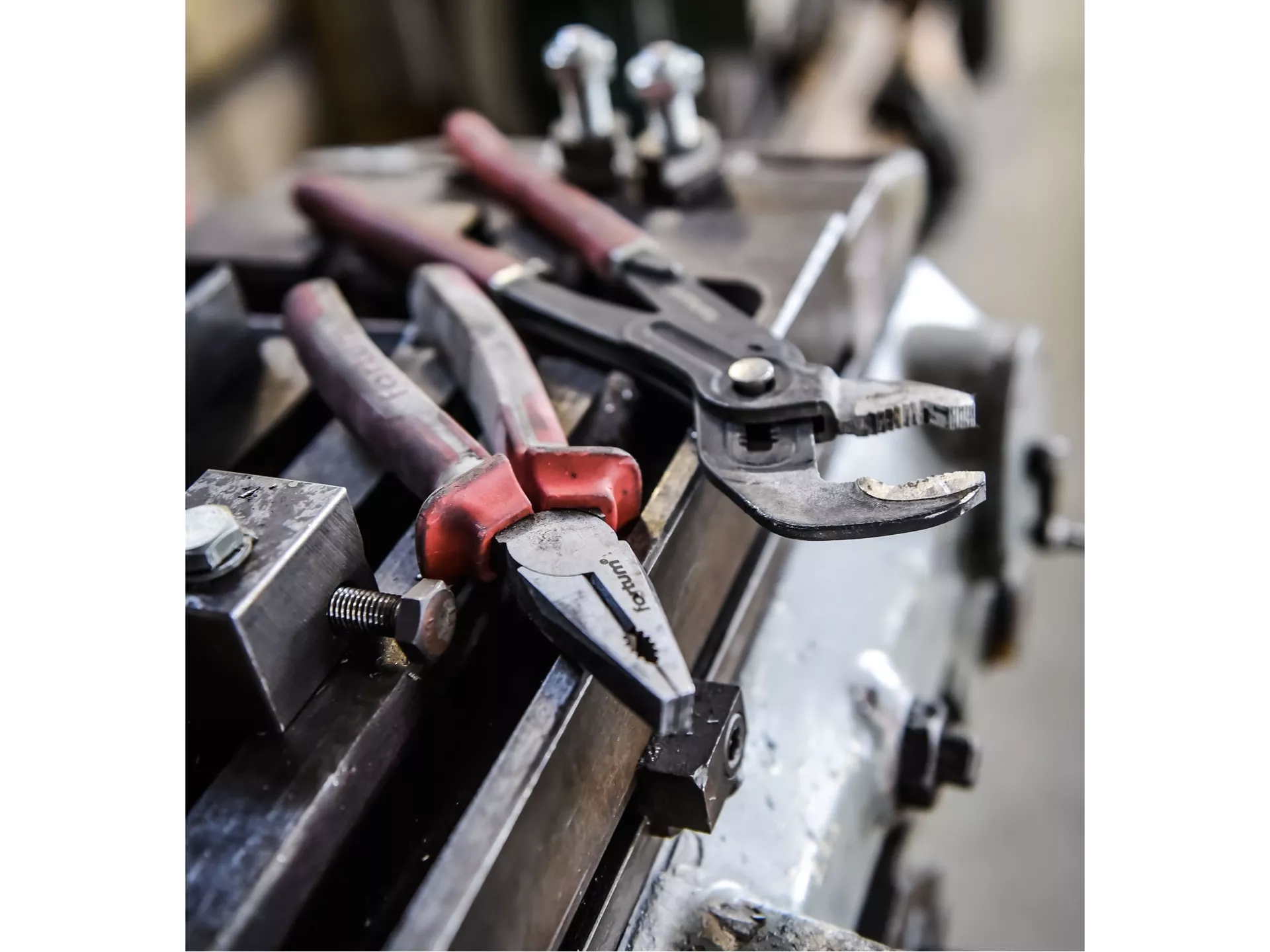 - Na první pohled to na nich nepoznáte, ale i přes přísně tradiční a střídmý design se Fortum kleště nepotřebují tvářit výjimečně -protože výjimečné JSOU. Vyšší tvrdost. Řezné čelisti kleští Fortum jsou indukčně kalené na tvrdost 58-62 HRC. Jednotlivé části čelistí jsou precizně frézované a ostří vybroušeno s maximální přesnosti. Svou geometrií umožňují čisté odstřižení měkkých i tvrdých drátů. (TIP: Většího účinku při stříhání dráhů dosáhnete, vložíte-li drát do čelistí co nejblíže kloubu.) Větší spolehlivost. Většina modelů kleští Fortum má šesticípý otáčivý koub, který svou geometrií výrazně zvyšuje schopnost kleští spolehlivě a bezpečně přenášet i vysoké síly. Větší účinnost. Dvousložkové rukojeti kleští Fortum jsou vyrobené s použitím upraveného PP plastu a měkké TPE pryže, která poskytuje bezpečnější, příjemnější a účinnější stisk. Delší životnost. Všechny kleště jsou vyrobeny z vysoce kvalitní oceli 61CrV5 následně kalené v oleji. Povrch je ošetřen podle typu buďto lakováním nebo fosfátováním jako prevence proti vzniku koroze. Větší odolnost. Použitý materiál včetně povrchové úpravy - to vše zamezuje zachytávání mastnoty, nečistot a zajišťuje vysokou odolnost vůči organickým i anorganickým rozpouštědlům, olejům a jiným agresivním látkám. (TIP: Pohodlí při práci a životnost svých kleští zvýšíte občasnou aplikací malého mnotství oleje na pohyblivé a leštěné části.)