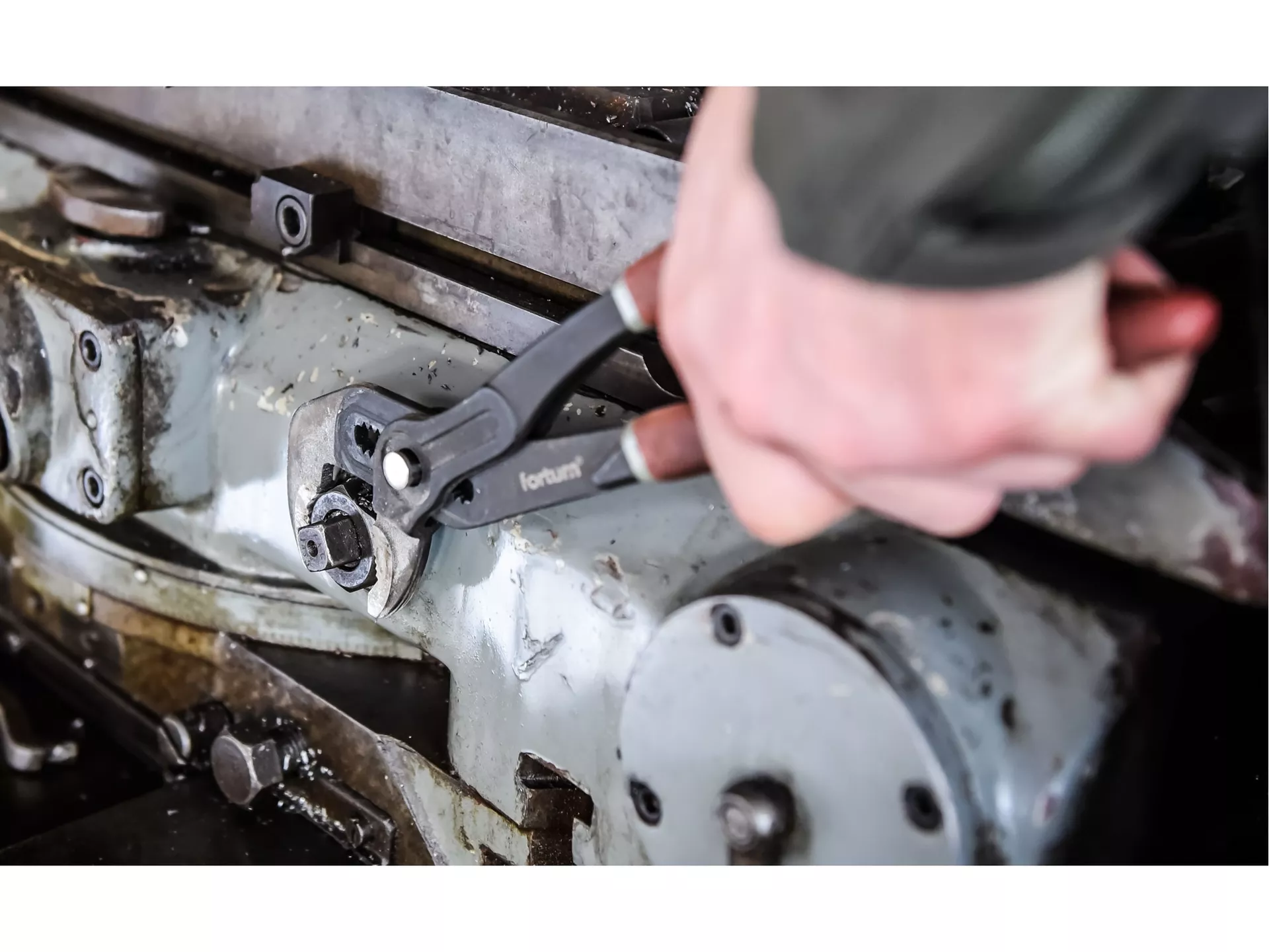 - Fortum Hunter.Řada profesionálních nastavitelných kleští s jednoduchým mechanismem, propracovanou konstrukcí a špičkovým materiálem (CrMoV ocel s čelistmi kalenými v oleji do tvrdosti cca 60HRC) slibuje nekonečnou řadu povolených závitů – bez přeskočení zámku! Zámek kleští Fortum Hunter uvolníte jednoduchým stiskem palce jedné ruky.
