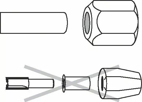 - Z důvodu zajištění bezpečnosti práce je vždy nutné používat kleštinové upínací pouzdro správné velikosti.