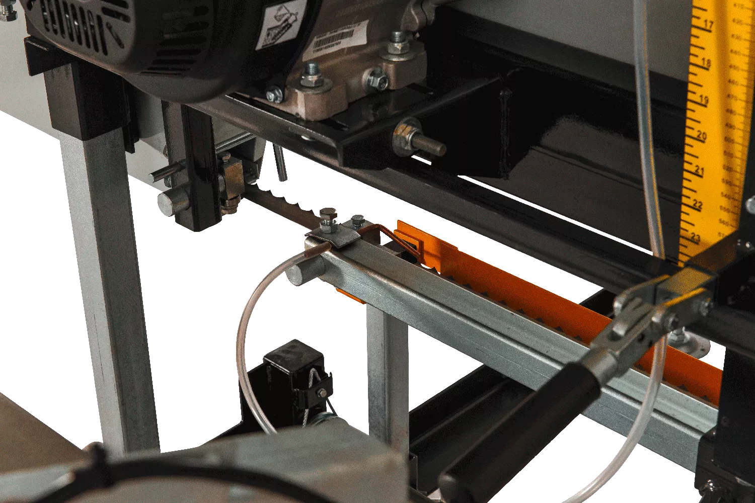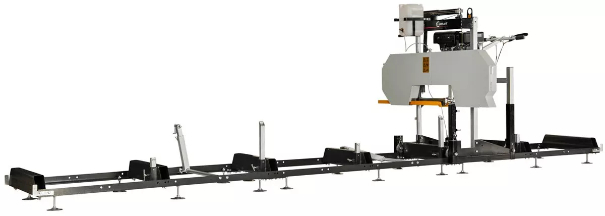 - 4-Takt OHV, benzín G420F, 420ccm, 9 kW, E-startérMax. šíře kmenu: 760 mmMax. šíře řezu: 760 mmMax. zdvih pilového pásu: 620 mmMin. zdvih pilového pásu: 50 mmMax. hloubka řezu: 180 mmMax. řezná délka základní verze: 3100 mmMožnost prodloužení: 1980 mm (lze vícekrát prodloužit)Min. délka řezu: 990 mmPrůměr hnacích kol: 474 mmTloušťka hnacích kol: 25 mmRozměr pilového pásu: 4026 x 32 x 1,1 mmRychlost pilového pásu: 15 m/sProřez: 1,4 - 2,2 mmObjem chladící nádoby: 10 LRozměry stroje (Š/V/D): 203/172/447 cmHmotnost (netto/brutto): 423 / 478 kgHmotnost prodlužovací sekce: cca 59 kgRozměry balení (D/Š/V): 2260/730/885 mm