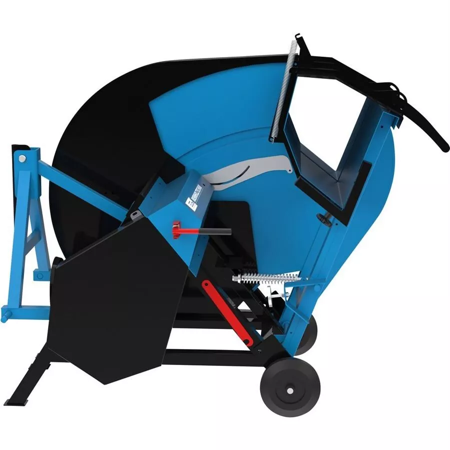 - 540 ot/min) • dvoudrážková řemenice.Konstrukce: svařovaný ocelový rám, 2dílný kryt pilového kotouče, podavač s ochranným krytem a prodlužovacím nástavcem (420 mm), výsuvný doraz pro jednotnou délku polen, 3bodový závěs (KAT1), transportní kola