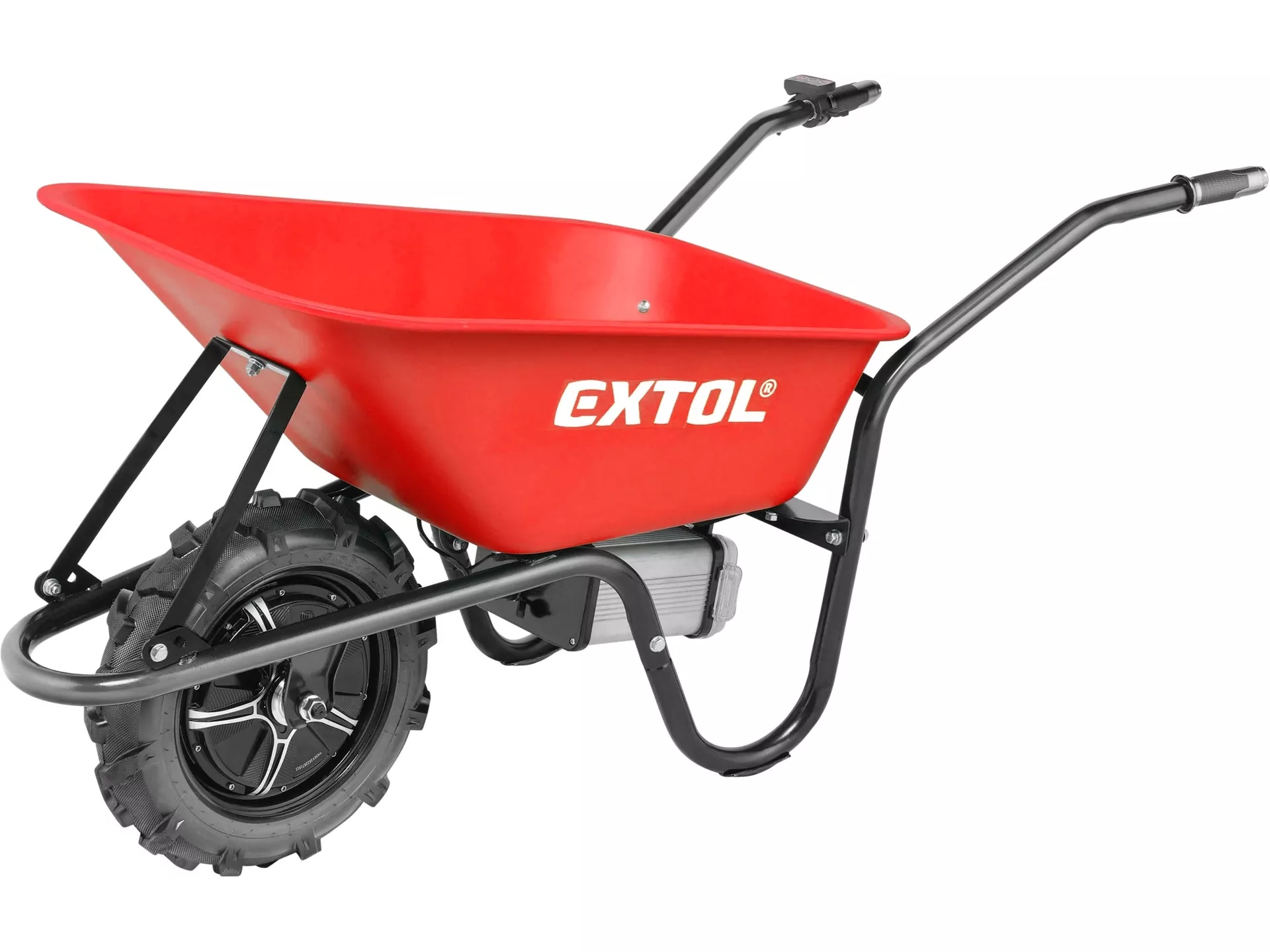 - Přepravní aku kolečko s pomocným elektrickým pohonem je určeno pro přepravu tuhých, sypkých nebo hustých materiálů. Díky elektrickému pohonu se výrazně urychlí přeprava materiálu a zároveň sníží únava obsluhy, což významně zvýší produktivitu práce. Použití Li-ion baterie výrazně snižuje hmotnost kolečka oproti kolečkům, které jsou poháněny olověnými bateriemi. Kolečko má na pravé rukojeti ovládací panel a pomocí palce si může nastavit okamžitou rychlost jak do předu, tak dozadu. Na ovládacím panelu lze nastavit jízdu dopředu nebo dozadu, brzdu, normální rychlost nebo Turbo. Pro běžný provoz se používá normální rychlost, Turbo lze použít při jízdě do kopce, v obtížném terénu nebo při přepravě těžšího nákladu. Kolečka jsou poháněná nejmodernějším „brushless" motorem. Tento nový typ motoru má vyšší životnost, je výkonnější a má menší spotřebu el. energie než klasické motory s uhlíkovými kartáči. Pokud je to nutné, lze motor kompletně vypnout a používat kolečko jen na ruční pohon. Elektrická brzda se používá pokud potřebujete zamezit pohybu kolečka na místě. Pneumatika má hluboký vzorek do terénu. Kolečko je dodáváno s kovovou korbou o objemu 80l, bezešvě lisovanou z jednoho kusu plechu. Pro přepravu lehčího a objemného nákladu lze dokoupit samostatně prodávanou plastovou korbu o objemu 100l. Všechny náhradní korby mají předvrtané díry pro snadnou montáž. Kolečko má krytí IP64, což mu umožňuje dočasnou práci ve vlhkém prostředí, případně umývání vapkou, ale není určeno k trvalému provozu nebo skladování ve vlhkém prostředí. Zdrojem elektrické energie je silná 40V/6Ah Li-ion baterie s LED displejem ukazujícím její úroveň nabití a okamžité napětí baterie. Vyjímatelná baterie umožňuje její snadné nabíjení a skladování v suchém a zatepleném prostředí, což je velmi důležité pro její životnost. Baterie má ochranu proti vybití pod minimální úroveň, před přetížením při nadměrném odběru proudu, přebitím, zkratem a náhlému zvýšení teploty při práci. Pro běžnou práci dostačuje jeden 6000mAh akumulátor, který můžete rychle nabít v rychlonabíječce, pro náročnější nebo delší práci můžete použít další nabitý akumulátor. Díky použité Li-ion technologii je ho možné kdykoliv dobíjet, aniž by se tím snižovala jeho kapacita. Li-ion akumulátor ztrácí energii vlivem samovybíjení velmi pomalu a vydrží dlouho nabitý a připravený k použití.