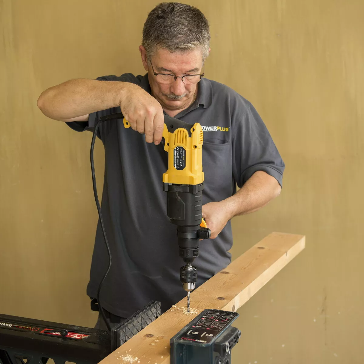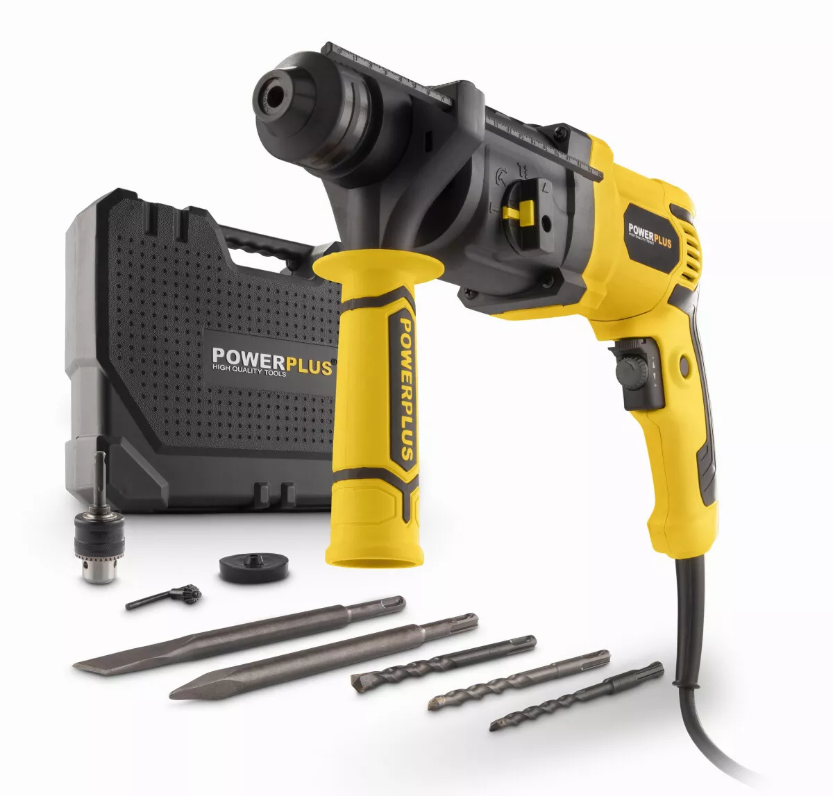 - Toto elektrické příklepové kladivo SDS Plus POWX1170 od PowerPlus můžete používat ve 4 různých režimech: sekání, sekání/vrtání, vrtání a otáčení sekáče.
