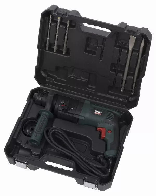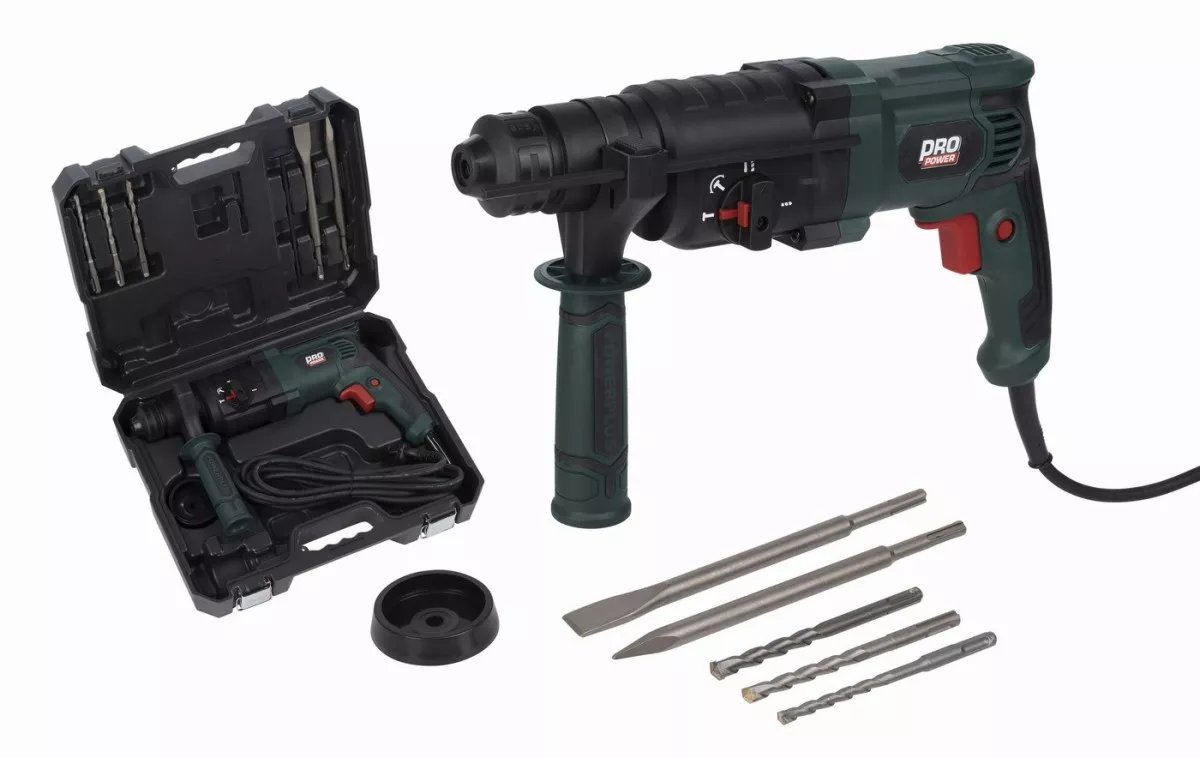 - Toto 800 W vrtací kladivo zvládne jakékoli vrtání, příklepové vrtání, sekání a možnost nastavení sekáče.