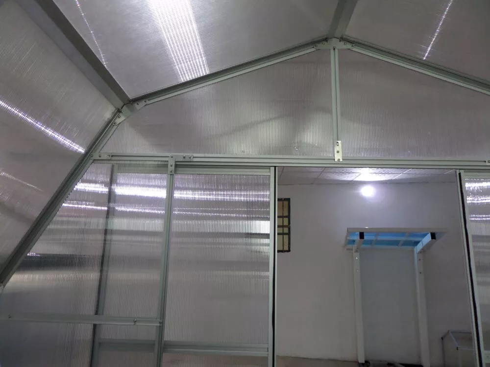 - Skleník s hliníkový rámem o tloušťce 1 mm.
