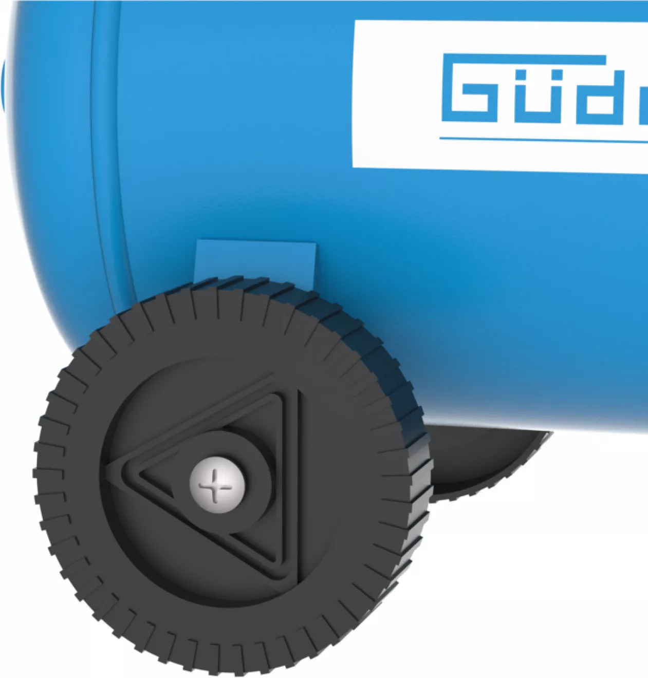 - Tlaková nádoba: 24 l, ventil pro vypouštění kondenzátu, přední podpěra s gumovou patkou, plastová kola (transportní rukojeť) pro pohodlné přejíždění.
