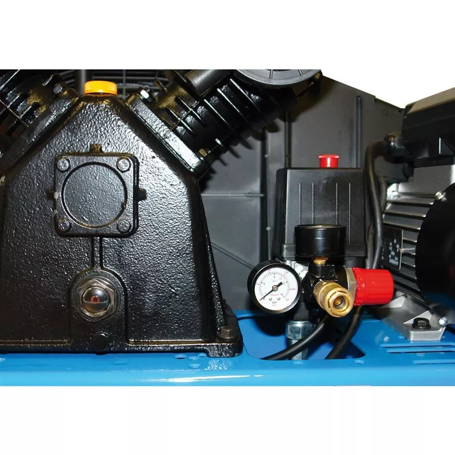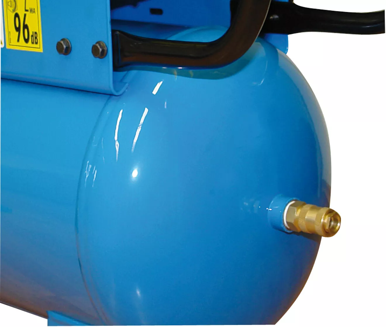 - Vybavení: 2 manometry, 2 výstupy tlakového vzduchu (-> kovové rychlospojky), tlakový spínač, redukční ventil, pojistný přetlakový ventil, zpětný ventil, olejoznak, vzduchové filtry (2), 1,8 m přípojný elektrický kabel H07 RN-F.Tlaková nádoba: 50 l, ventil pro vypouštění kondenzátu, přední podpěra nádoby s gumovými patkami, velká plastová kola s gumovým běhounem/nastavitelné transportní madlo pro jednoduchou manipulaci