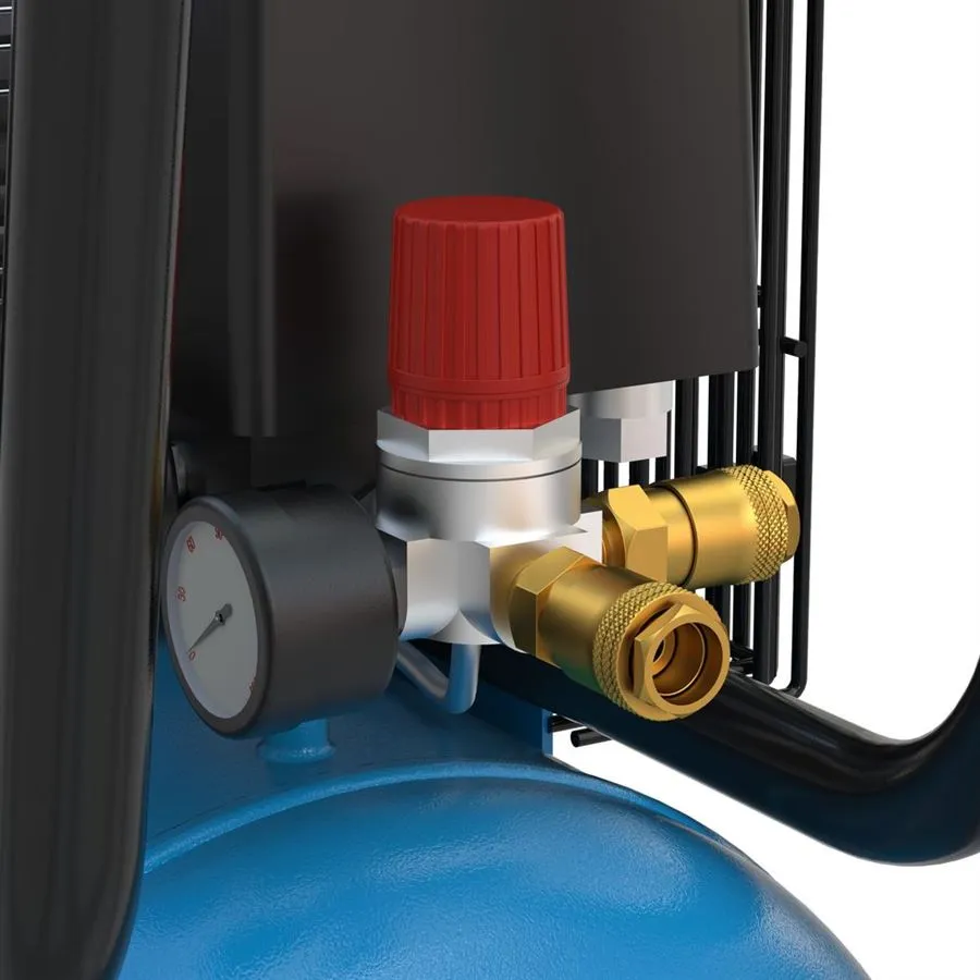 - Tlaková nádoba: 50 l, ventil pro vypouštění kondenzátu, podstavec s antivibračními patkami (2), celoplastová kola umožňující snadné přejíždění, transportní rukojeť