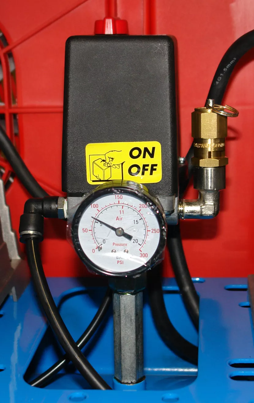 - • 2 manometry (-> měření tlaku ve vzdušníku/pracovního tlaku)