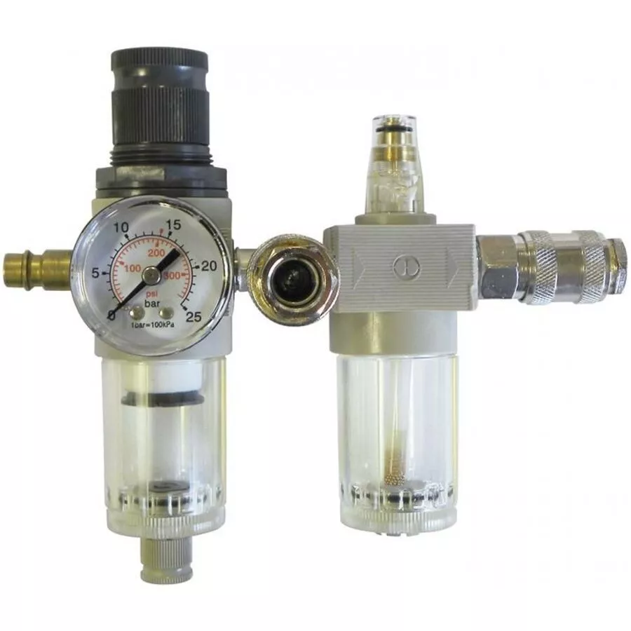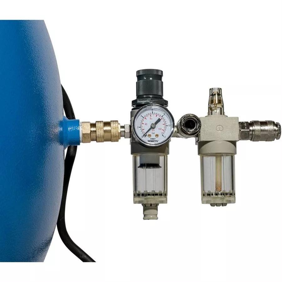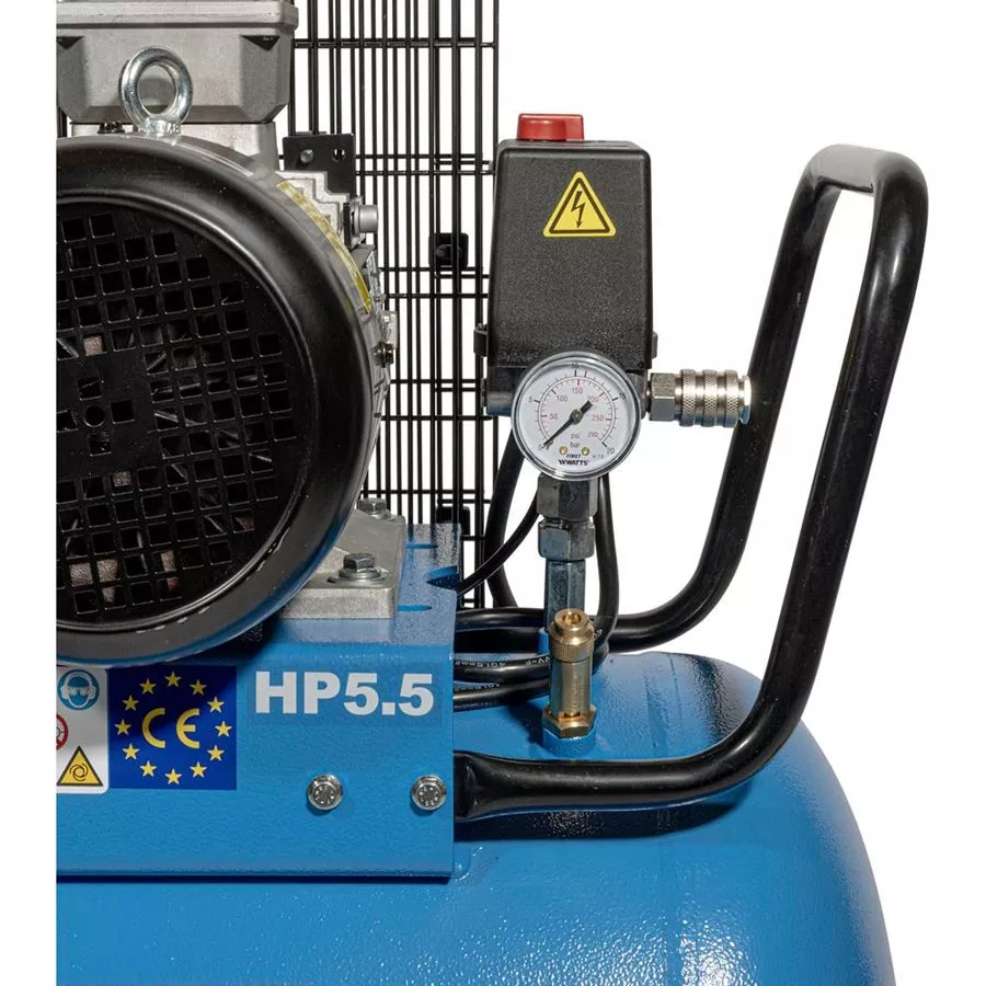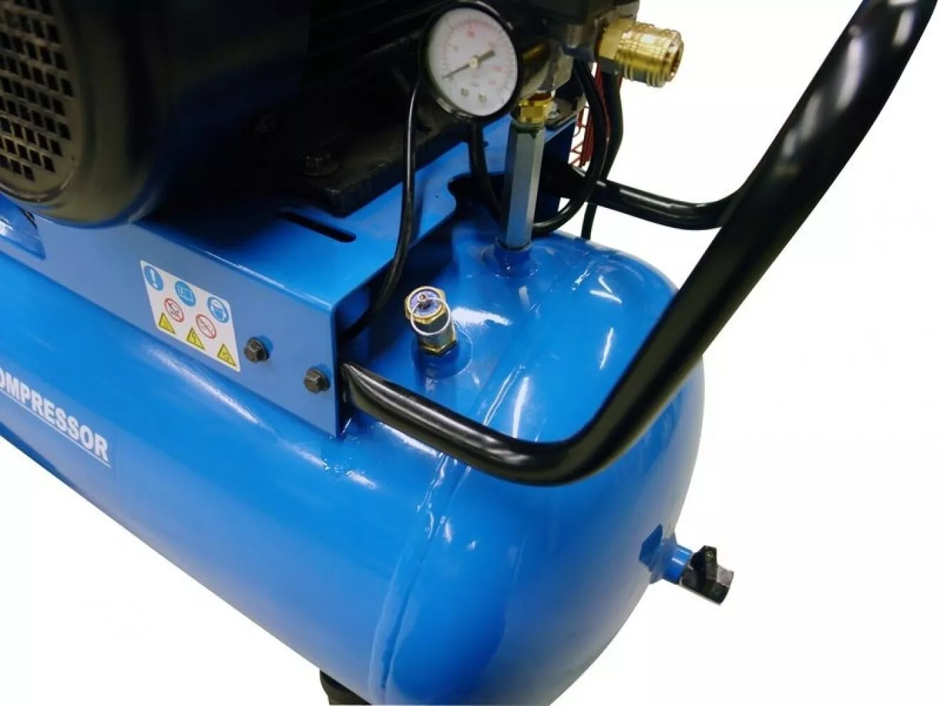 - • nízkootáčkový kompresor (-> 1.290 ot./min.; snížená provozní hlučnost/vibrace stroje/opotřebení konstrukčních prvků) Konstrukce: • elektromotor 4,0 kW/P1 (-> 400 V~50 Hz, s externí proudovou ochranou) • agregát s dvoustupňovou kompresí (-> dvouválcový/řadový)• řemenový pohon Vybavení: • 2 manometry (-> měření tlaku ve vzdušníku/pracovního tlaku) • 3 výstupy vzduchu (-> u redukčního ventilu/na úpravné jednotce: rychlospojky; na vzdušníku: kulový kohout s vnitřním závitem 1/2'')• komplexní úpravná jednotka stlačeného vzduchu (redukční ventil s filtrem/mlhový přimazávač)• tlakový spínač Condor • vzduchový filtr• zástrčka s měničem fází Tlaková nádoba: • 100 l vzdušník (-> 10 let garance na prorezavění) • pojistný přetlakový ventil • ventil pro vypouštění kondenzátu • přední opěrky s gumovými patkami • celoplastová kola s gumovým běhounem (-> průměr/šířka: 260/80 mm) • transportní madlo pro jednoduchou manipulaci Celkové rozměry (d x š x v): 1.140 x 560 x 970 mm.