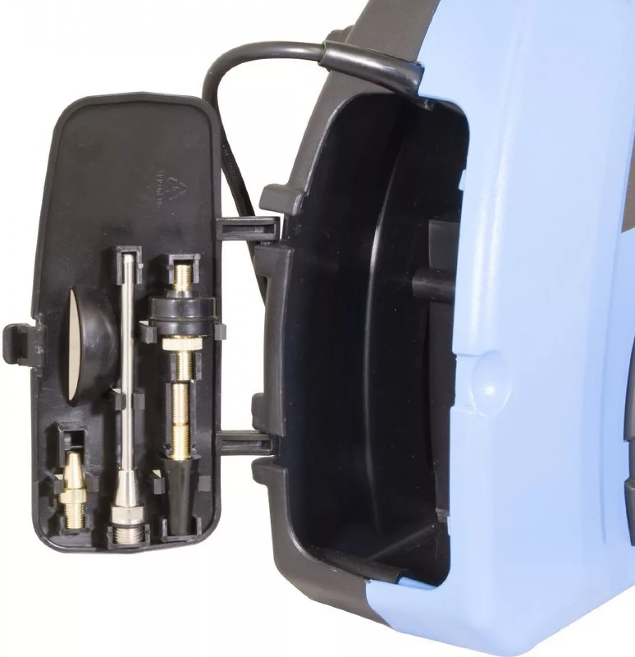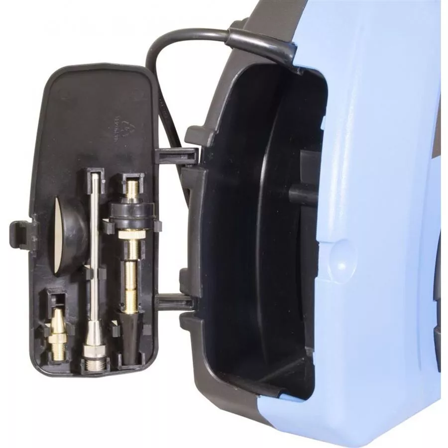- Vybavení: 3 m tlaková hadice s rychlospojkou, úložný box, přepravní rukojeť, 1 m síťový kabel