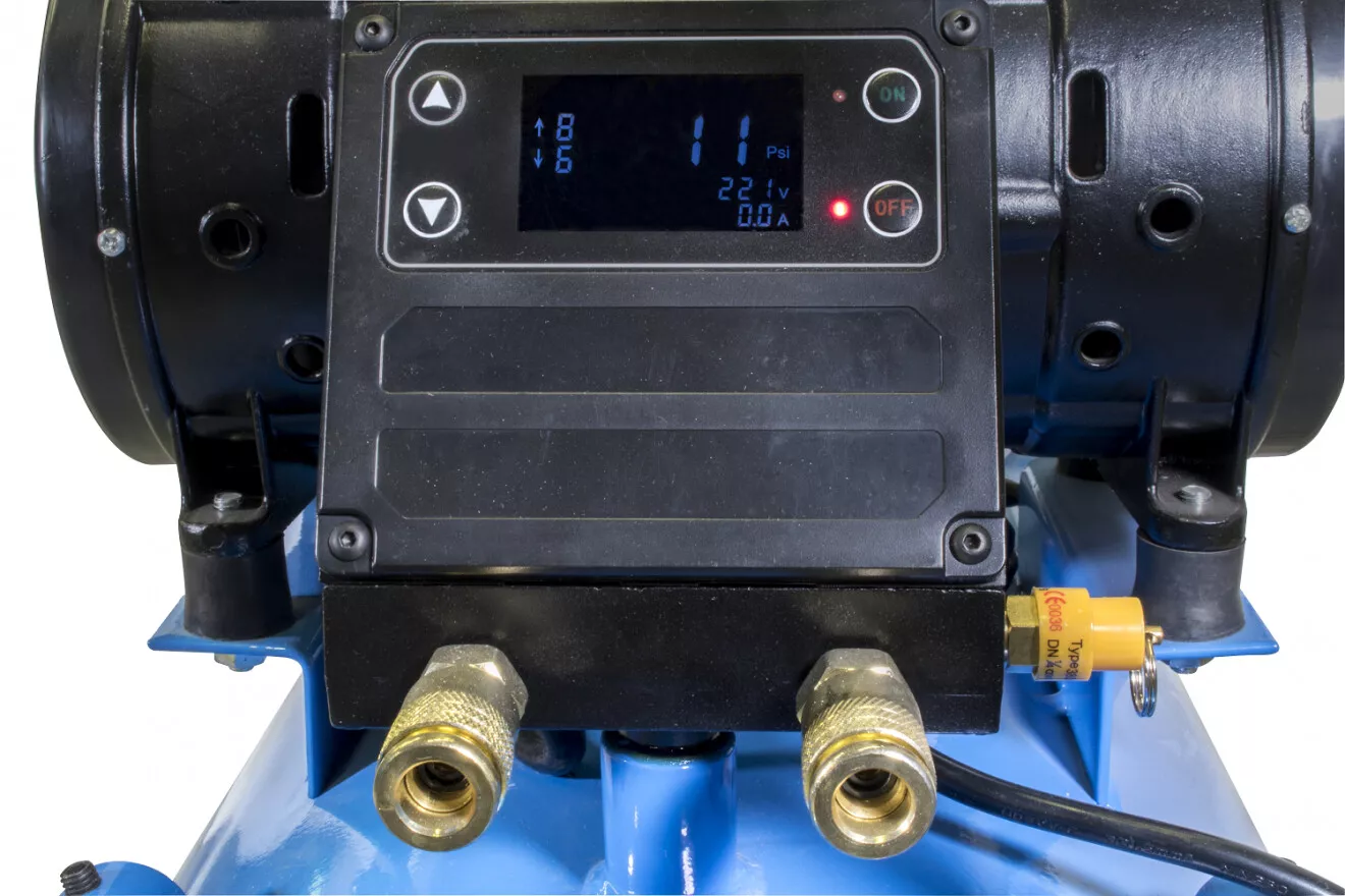 - ECO DIGITAL - ovládací panel s digitálním displejem: měření tlaku ve vzdušníku; automatické spouštění (vypínání) kompresoru; regulace výstupního tlaku pomocí výběrových tlačítek.