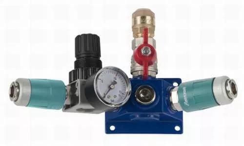 - 1 x rozdělovací krabice, 2 x rychlospojka 1/2"AG, 1 x záslepka 1/2", 1 x spojka 1/4" AG, 1 x kulový ventil 1/2"AG x 1/2"IG, 1 x regulátor tlaku s filtrem 1/4", 1 x olejový přimazávač 1/4",1 x zástrčková spojka AD 22 mosaz