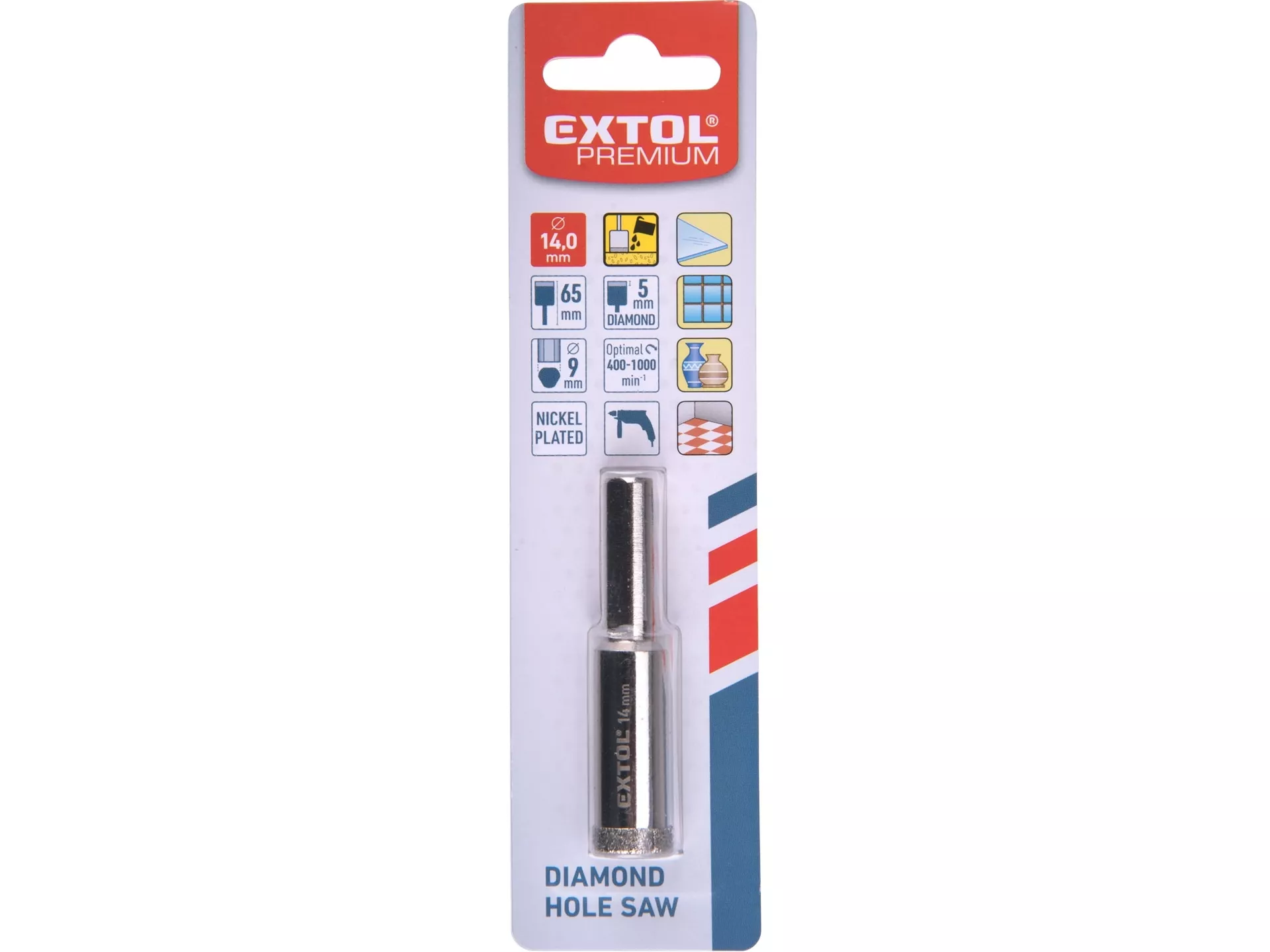 Korunka vykružovací diamantová na sklo a keramiku, o 14mm EXTOL PREMIUM 8801981