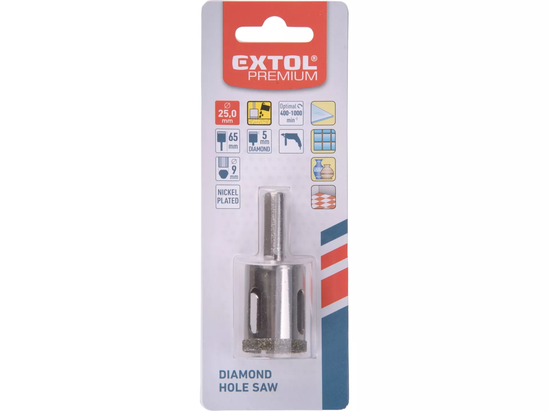 Korunka vykružovací diamantová na sklo a keramiku, o 25mm EXTOL PREMIUM 8801986